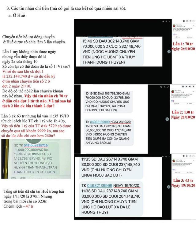 Tiếp đến, netizen chỉ ra một số chi tiết trong hai bài đăng của mẹ Hồ Ngọc Hà vào ngày 1/11/2020 (sau đợt ra miền Trung làm từ thiện) và ngày 7/9/2021 (sau khi Trấn Thành đăng sao kê) có những số liệu không trùng khớp nhau. Ví dụ như: Số tiền chi ở Huế trong bài đăng ngày 1/11/2020 là 370 triệu nhưng ở bài đăng mới chỉ có 323 triệu.