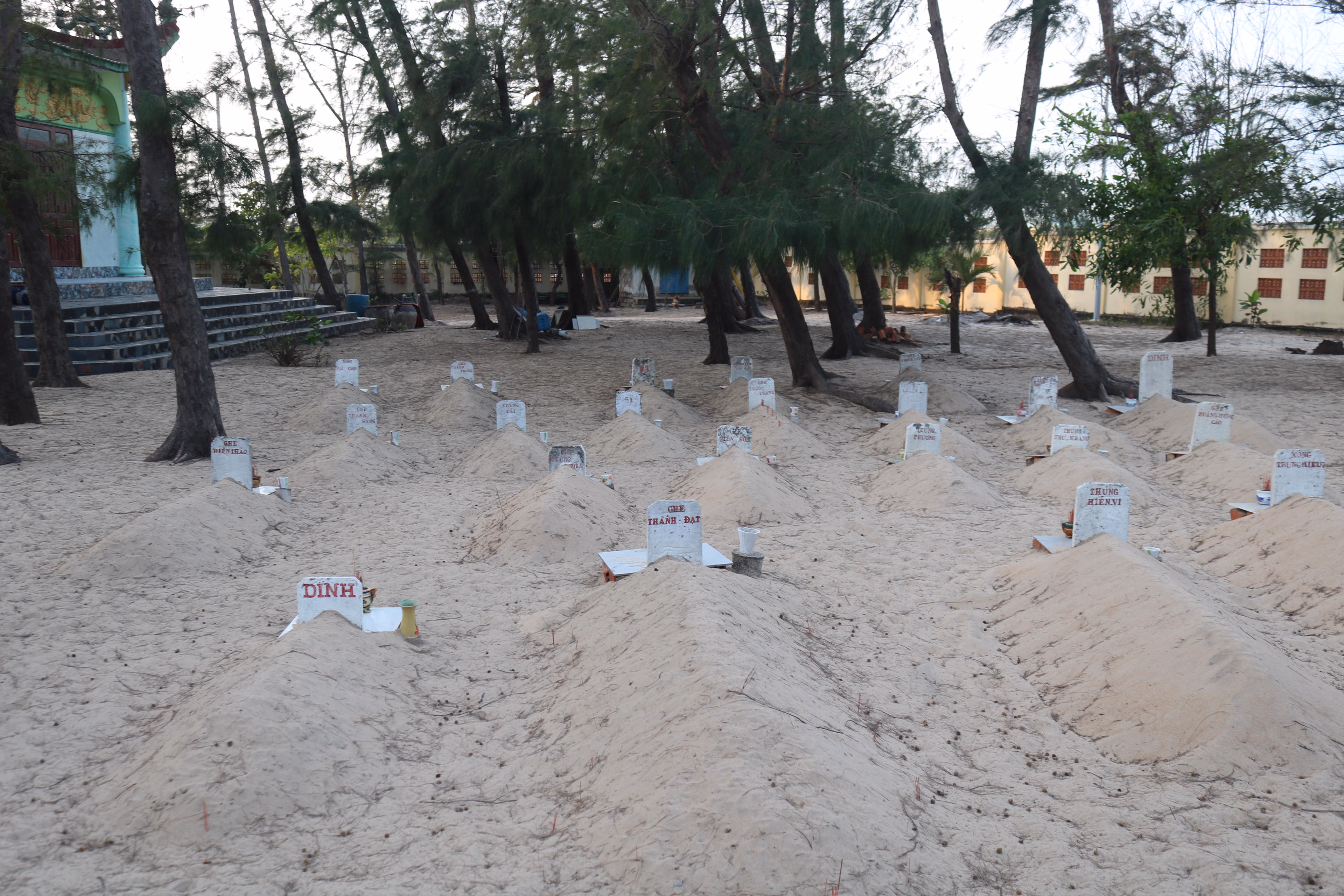 Bà Ly cho biết, từ khi ghe đánh cá của gia đình phát hiện một cá Ông lụy trên biển và đưa vào chôn cất tại đây, gần như chiều nào bà cũng ra nghĩa địa thắp hương, cầu nguyện. Với bà Ly, đó không chỉ là việc làm theo tục lệ mà còn là sự gắn bó tình cảm, như với một người thân trong nhà.