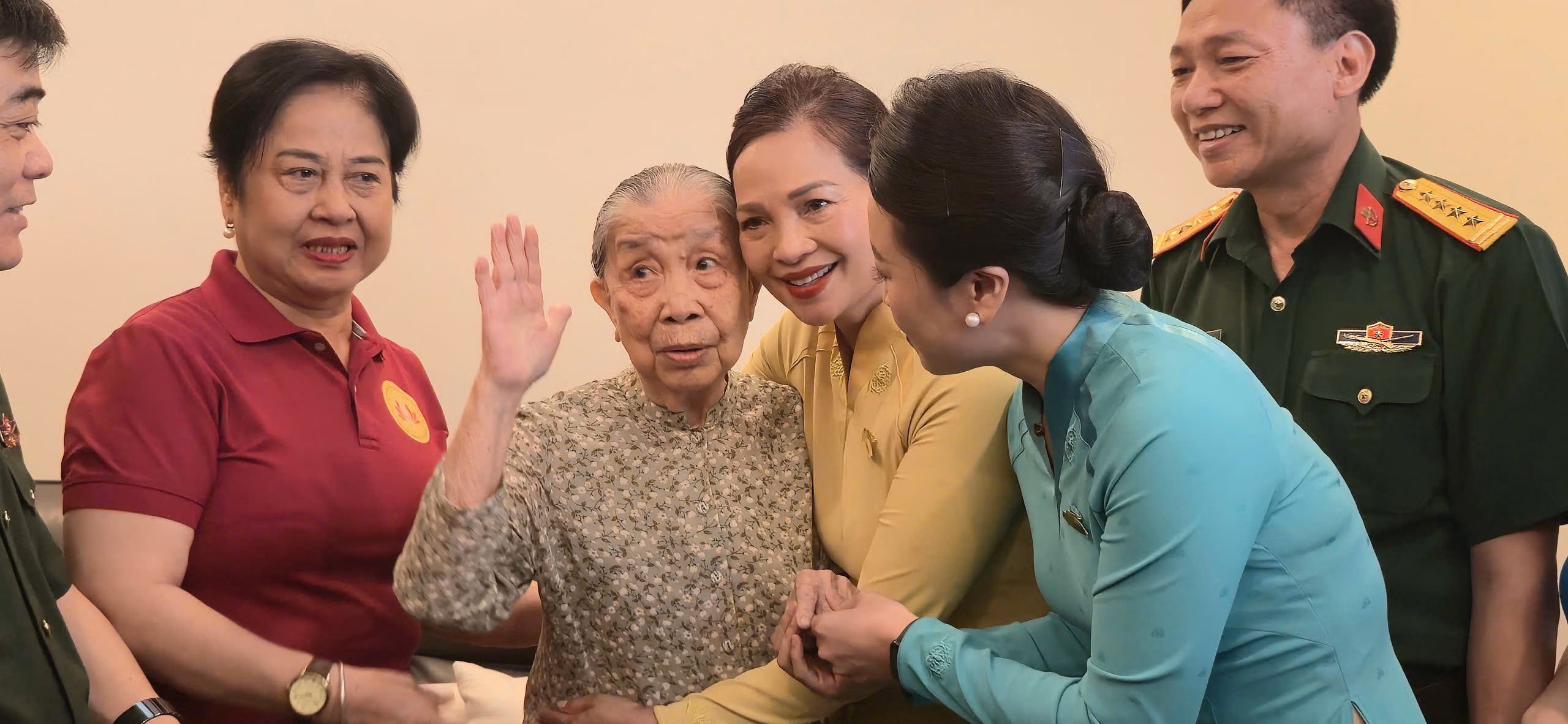 Đi cùng chúng con, còn có các lãnh đạo, nhân viên của Tổng công ty Hàng Không Việt Nam. Được về thăm mẹ, chúng con mang theo tình cảm, sự tri ân sâu sắc của các thế hệ cán bộ, chiến sĩ trong toàn quân. Chúng con kính chúc mẹ luôn mạnh khỏe, sống thật lâu để chứng kiến sự phát triển của đất nước, sự vững mạnh của quân đội…”