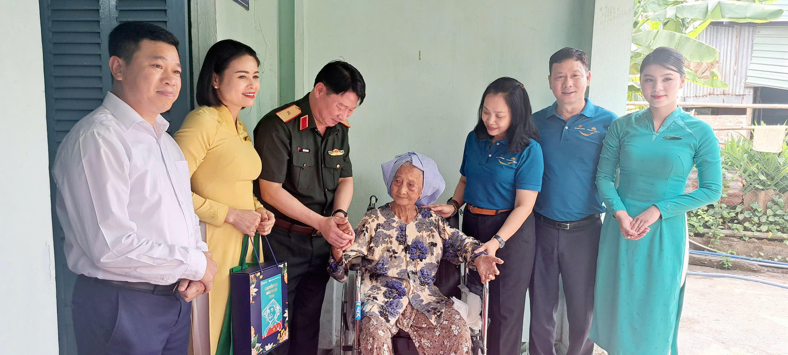 Do thời gian công tác chỉ có 1 buổi chiều, đoàn được chia làm 3 đoàn nhỏ, để đến thăm 21 địa chỉ. Tôi được tham gia đoàn công tác số 2 do Đại tá Hoàng Ngọc Thanh, Phó Chính ủy Binh chủng Đặc công, Đại tá Phùng Thế Hùng, Phó Tham mưu trưởng Quân khu 7; ông Trần Huy Thắng, Phó Giám đốc Trung tâm Dịch vụ và Khai thác Vietnam Airlines cùng các cán bộ chiến sĩ của Ban Phụ nữ Quân đội, Binh đoàn 18, nhân viên Vietnam Airlines...