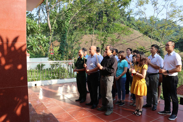 Đoàn đến dâng hương tưởng niệm các Anh hùng liệt sĩTrước khi thăm và tặng quà, đoàn công tác của Tạp chí Lao động và Xã hội đã đến thăm Đồn Biên phòng A Mú Sung; dâng hương tại nhà bia tưởng niệm các anh hùng liệt sỹ trong khuôn viên Đồn Biên phòng để tưởng nhớ các các chiến sĩ đồn A Mú Sung đã hy sinh trong cuộc chiến bảo vệ Tổ quốc hơn 30 năm trước. Họ là những chàng trai tuổi còn trẻ, mới mười tám, đôi mươi… đã ngã xuống vì nền độc lập, tự do, hạnh phúc của cả dân tộc, vì sự bình yên của đất mẹ. Trên tấm bia đó có khắc tên 30 người lính hi sinh ngày 17/2/1979, cuối tấm bia có tên 5 người lính hy sinh vào ngày 17/2/1984 và liệt sỹ Trần Văn Duẩn hy sinh ngày 17/2/2011.