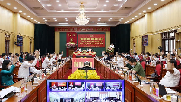 (PLVN) - Sáng 19/5, HĐND tỉnh Thái Nguyên khóa XIII đã tổ chức kỳ họp chuyên đề bằng hình thức trực tuyến tại điểm cầu trung tâm là trụ sở Tỉnh ủy và kết nối với 9 điểm cầu là các huyện, thành phố, thị xã.