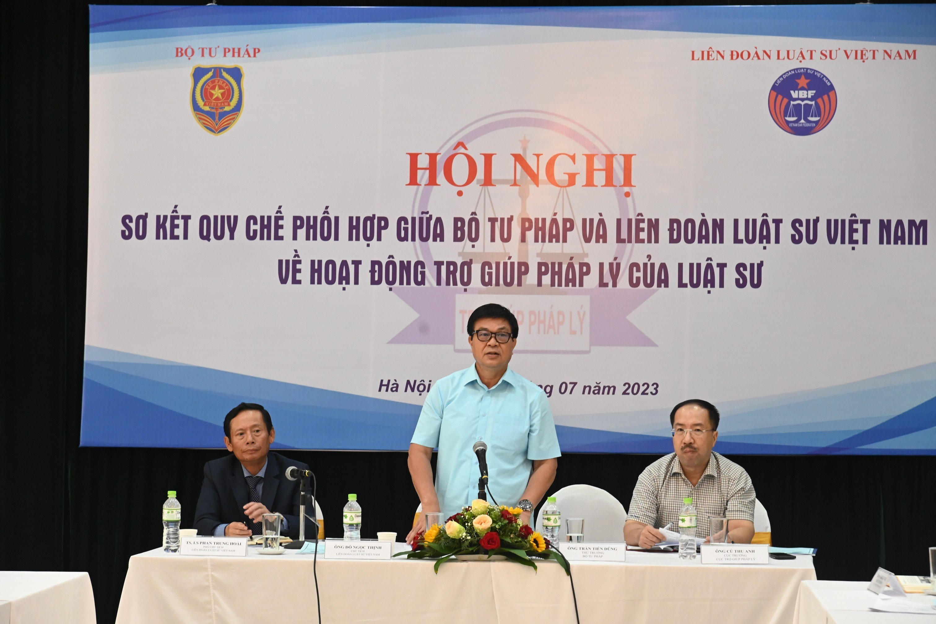 Phát biểu khai mạc, ông Đỗ Ngọc Thịnh, Chủ tịch Liên đoàn Luật sư (LS) Việt Nam cho biết ngày 28/12/2016, Bộ Tư pháp và Liên đoàn LS Việt Nam đã ký Quy chế phối hợp số 4617/QCPH/BTP-LĐLSVN về hoạt động trợ giúp pháp lý (TGPL) của LS, tạo tiền đề cho việc triển khai phối hợp toàn diện giữa hai cơ quan và là cơ sở cho việc triển khai thực hiện hoạt động phối hợp ở các địa phương trên toàn quốc.