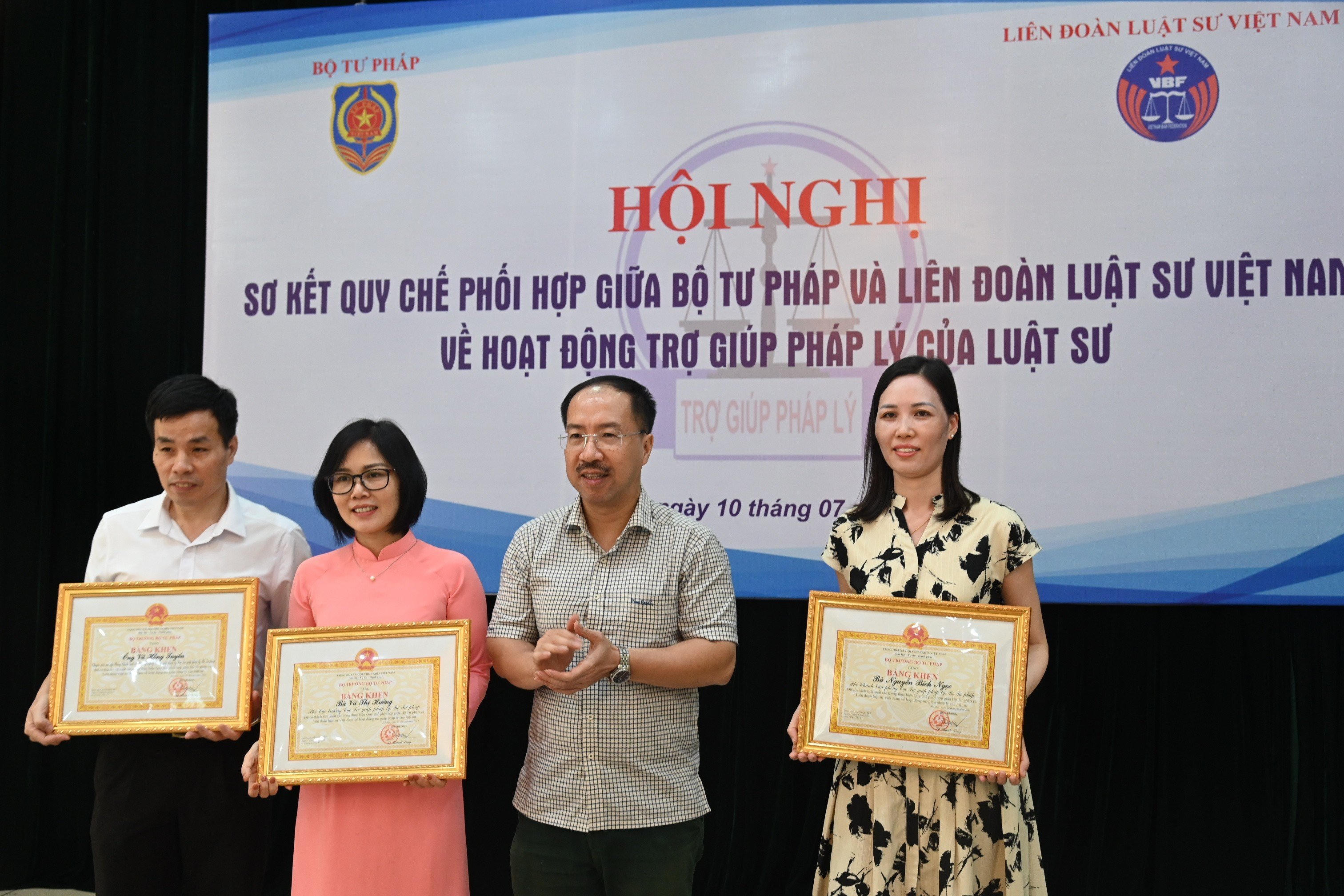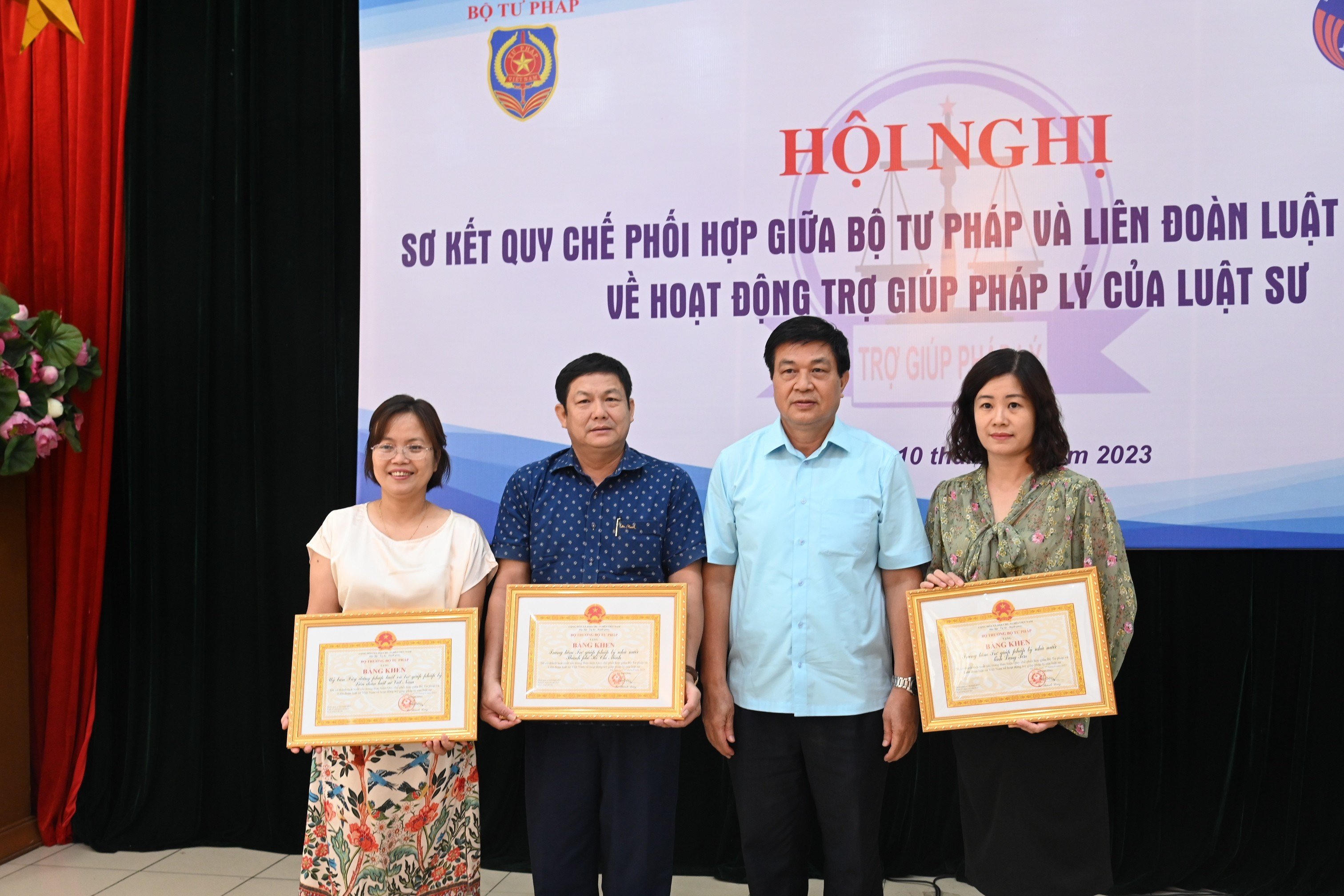 Nhân dịp này, Hội nghị đã công bố Quyết định khen thưởng của Bộ trưởng Bộ Tư pháp và của Chủ tịch Liên đoàn LS Việt Nam cho các tập thể, cá nhân có thành tích xuất sắc trong thực hiện Quy chế phối hợp.