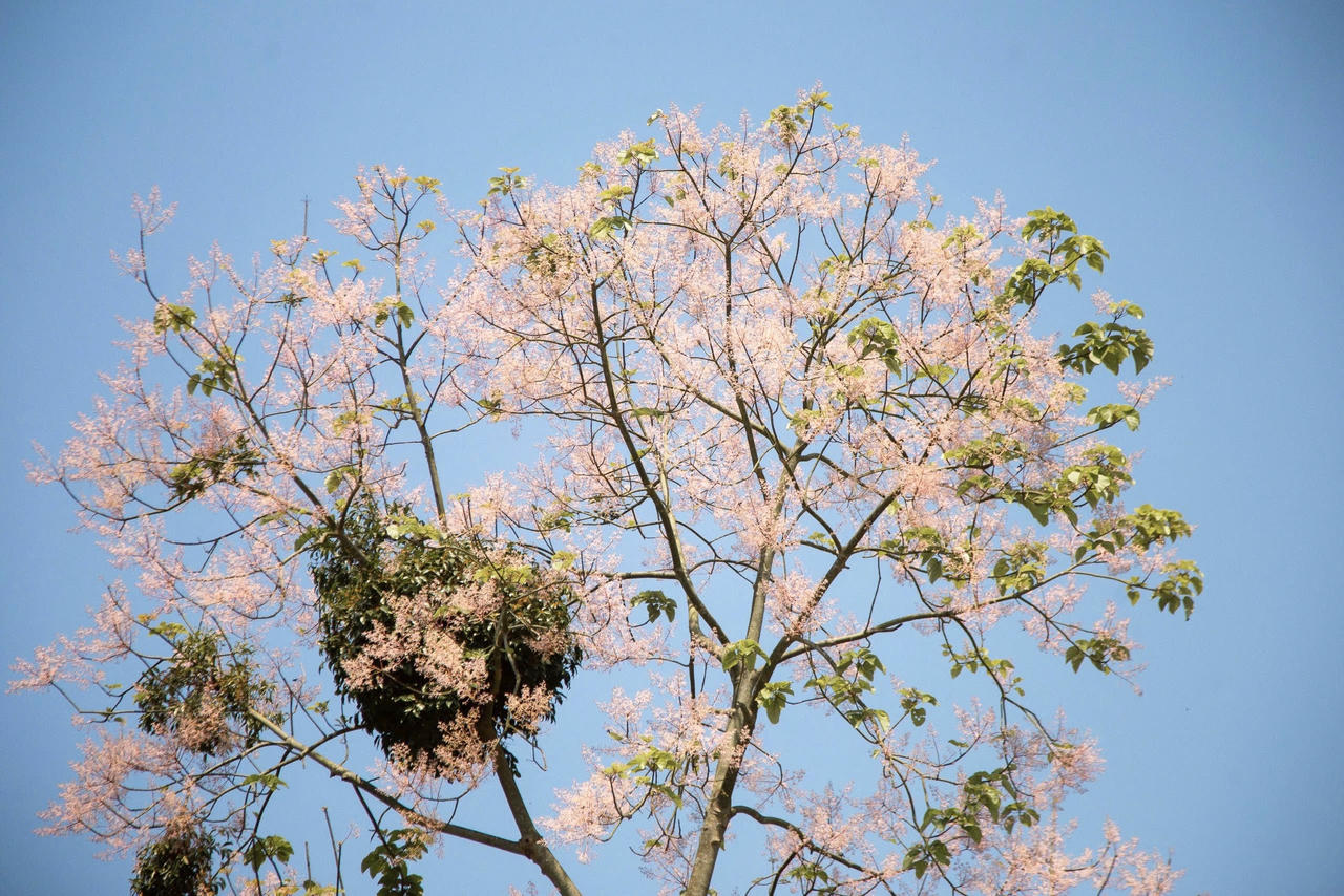 Hoa ngô đồng không đơn lẻ như hoa hồng mà kết thành từng chùm, tựa như những áng mây hồng nhạt. |