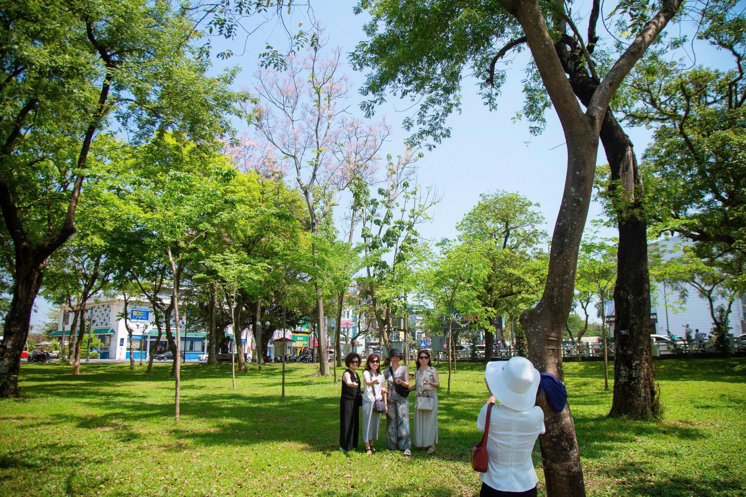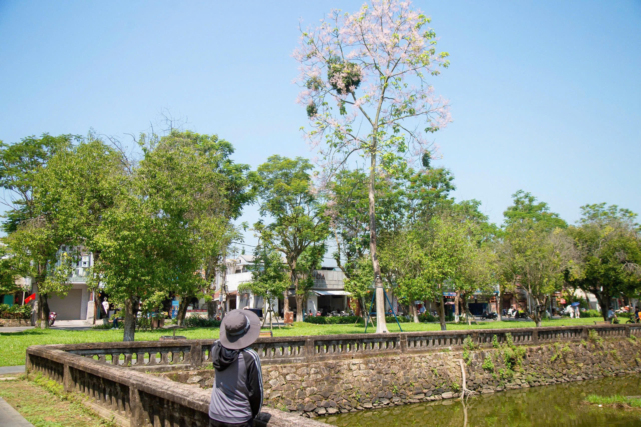 Loài hoa ngô đồng nổi bật trong hàng loạt khoảnh khắc check‑in của du khách ghé Cố đô. |