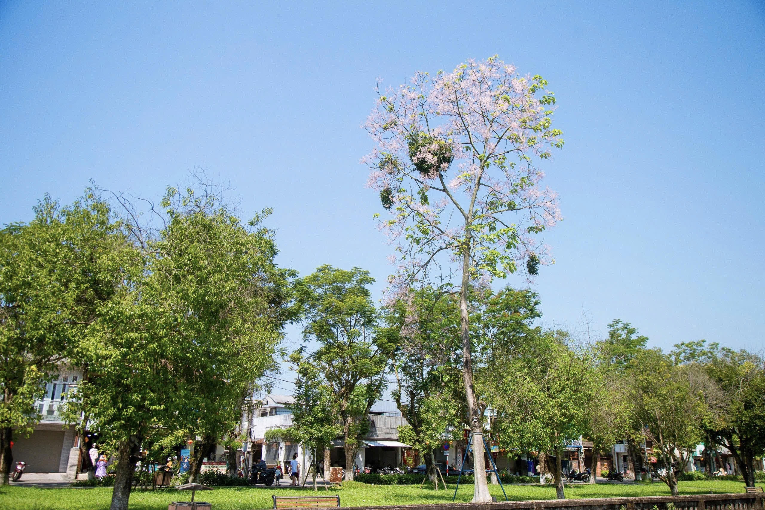 Các tuyến đường ở quận Thuận Hoá, Phú Xuân được tô điểm bởi sắc hoa ngô đồng. |
