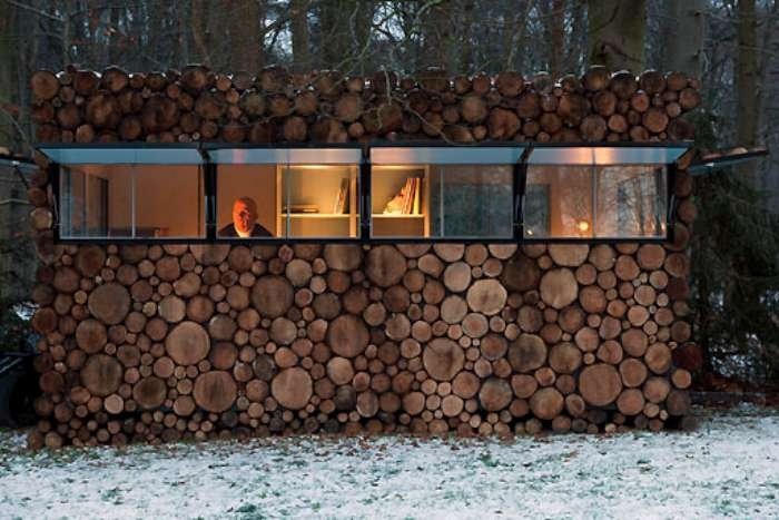 Nhìn từ xa, đây có thể giống như một đống khúc gỗ bị bỏ lại bởi một số thợ rừng. Cho dù bạn nhìn nó như thế nào, nó chắc chắn chỉ giống như một đống củi nhưng khi bạn bước vào bên trong, đó là một ngôi nhà nhỏ được thiết kế với không gian thoáng đãng, giúp cho người nghệ sỹ có thể thỏa sức sáng tạo.