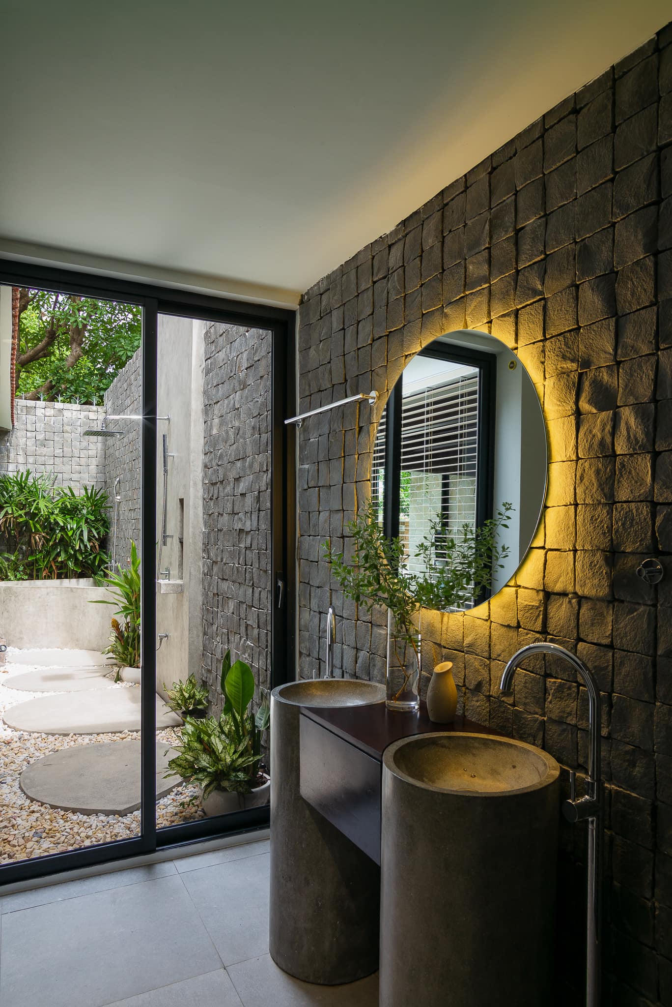Phòng tắm chính nối liền khu vực tắm lộ thiên. |