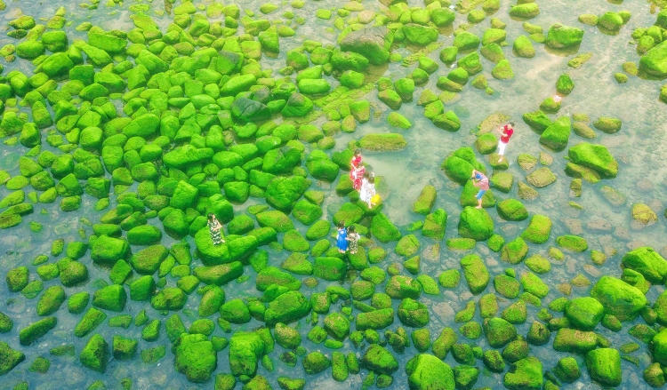 Ngỡ ngàng vẻ đẹp rêu xanh tại rạn Nam Ô