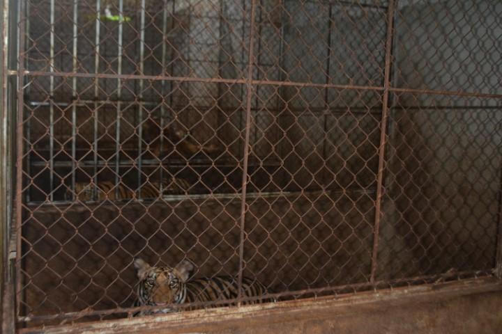 Một con hổ trong chuồng tại hầm nuôi nhốt hổ của gia đình chị Hồ Thị Thanh. |