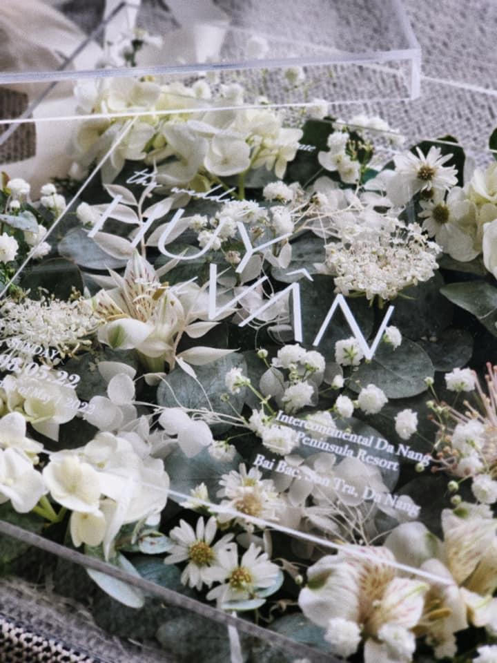 Dù chỉ là bữa tiệc gia đình ấm cúng nhưng có thể thấy Ngô Thanh Vân cùng Huy Trần đã đầu tư không nhỏ cho hôn lễ. Mọi thứ đều được cặp đôi chuẩn bị kỹ lưỡng. Thiệp mời đám cưới của vợ chồng đả nữ được thiết kế riêng theo phong cách có một không hai, được lồng kính và lót hoa chỉnh chu như một món quà lưu niệm thực sự. Người hâm mộ đang rất trông chờ đến cuối tuần này để được ngắm cô dâu Ngô Thanh Vân và gửi lời chúc phúc đến cặp đôi.