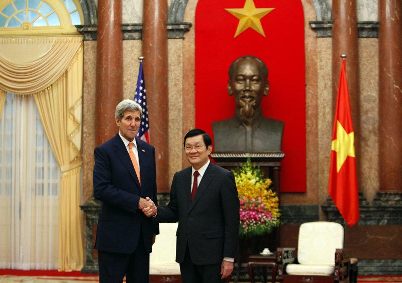 Đón chào Ngoại trưởng Mỹ trở lại VN, Chủ tịch nước Trương Tấn Sang cám ơn ông Kerry vì những nỗ lực góp phần bình thường hóa và phát triển quan hệ hai nước từ khi ông làm thượng nghị sĩ.