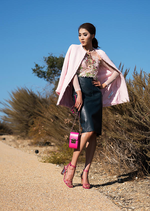 Ngọc Quyên khoe nét 'sang chảnh' bằng xu hướng trang phục thắt nút đang khuấy đảo làng mốt thế giới. Cùng với kiểu dáng tinh tế, gam màu kích thích thị giác càng giúp hình ảnh của Ngọc Quyên trở nên nổi bật hơn.