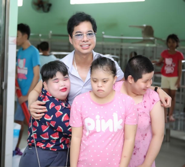 Ngọc Sơn cùng các em nhỏ tại mái ấm Thiện Duyên.
