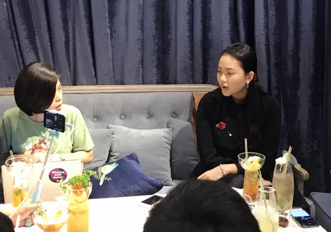 Phan Như Thảo trao đổi với báo chí sau sự việc. Ảnh:Tin Tin. |