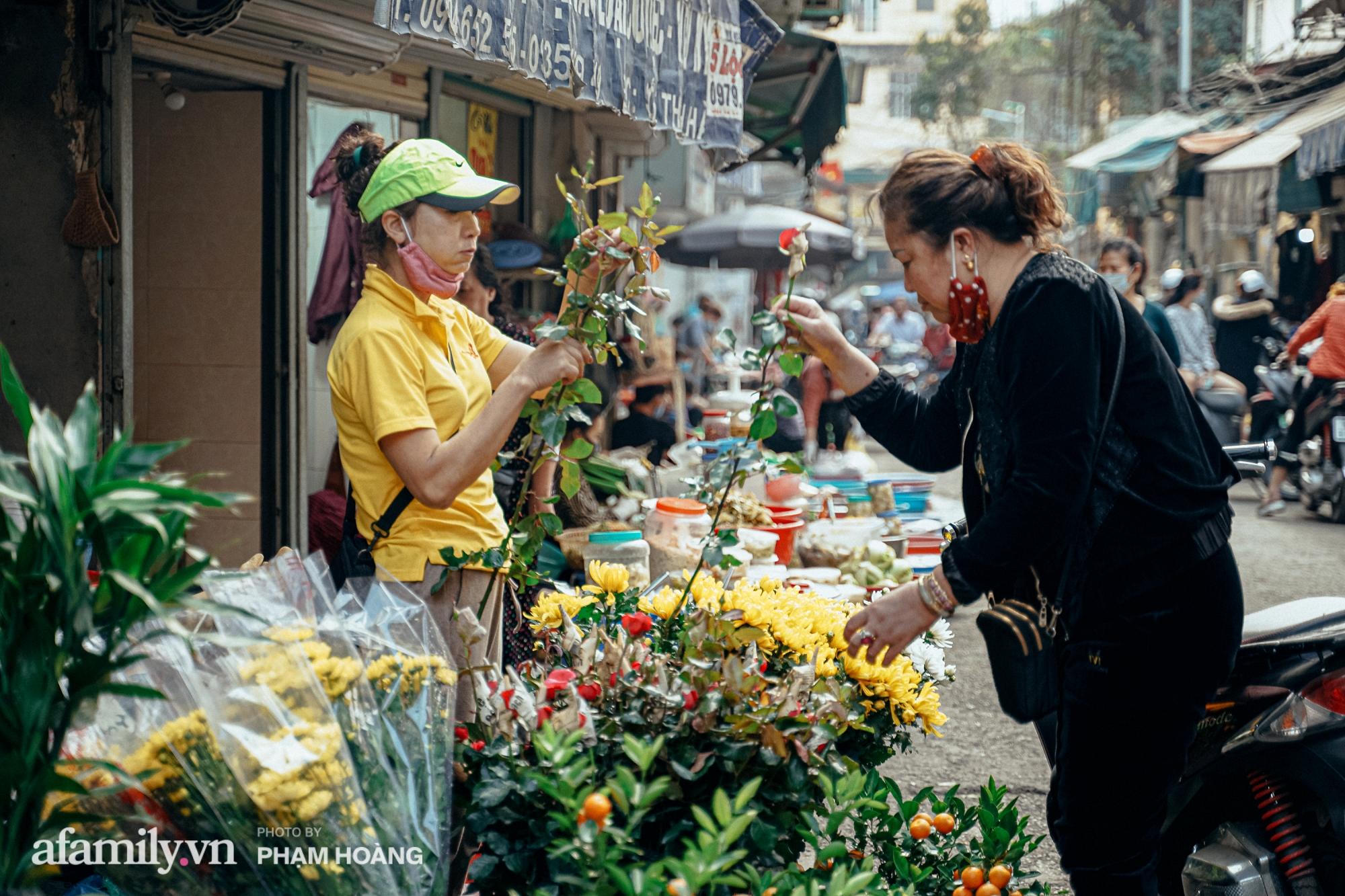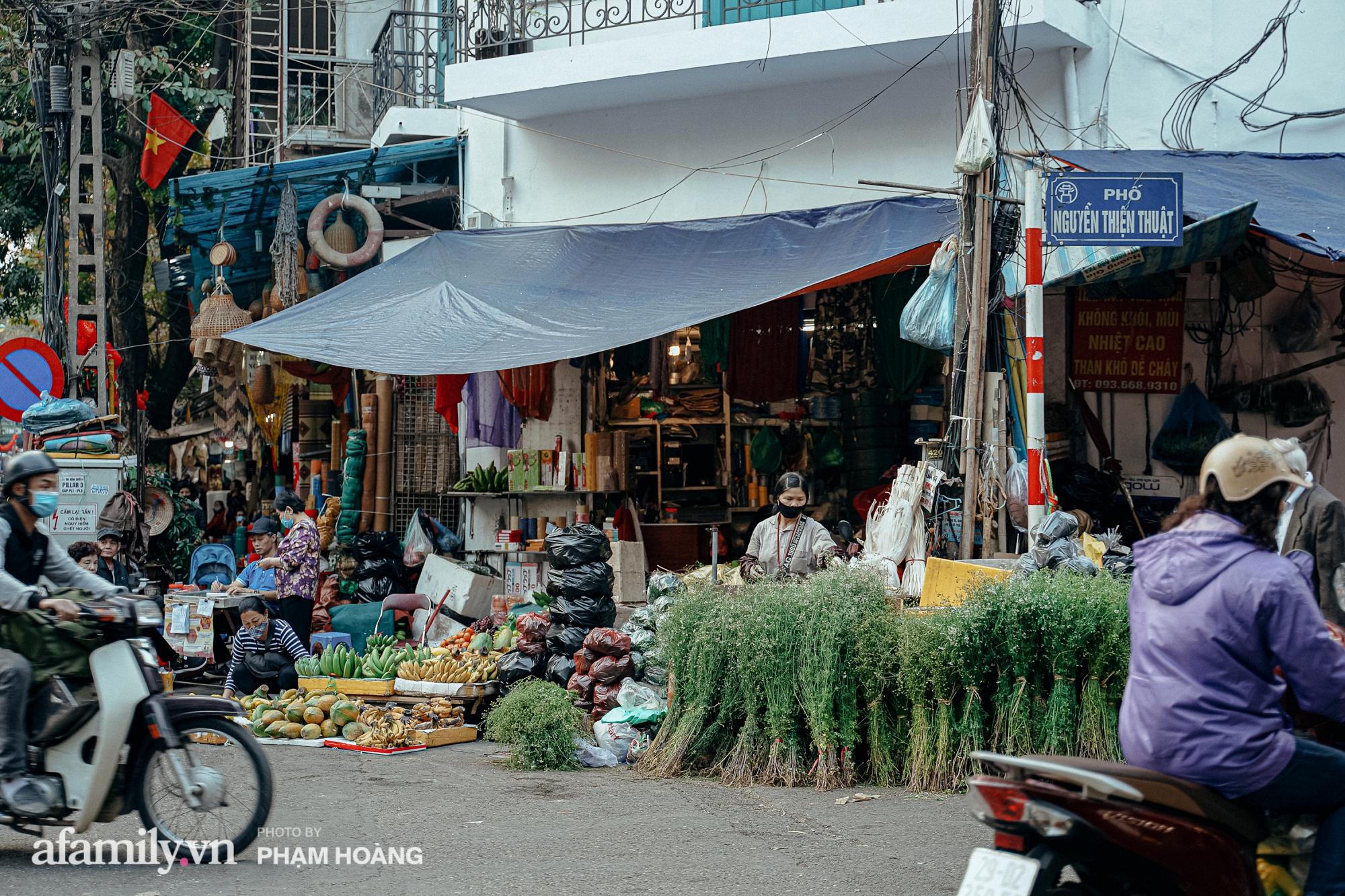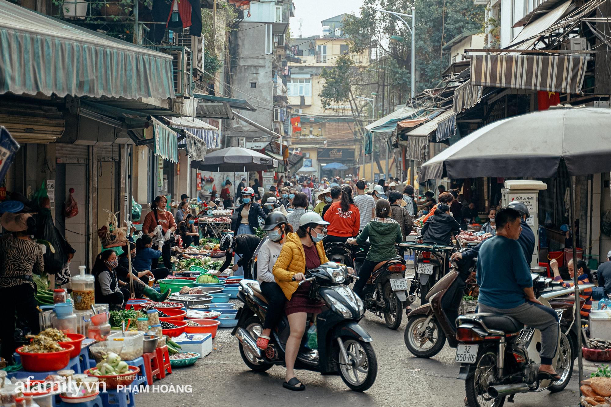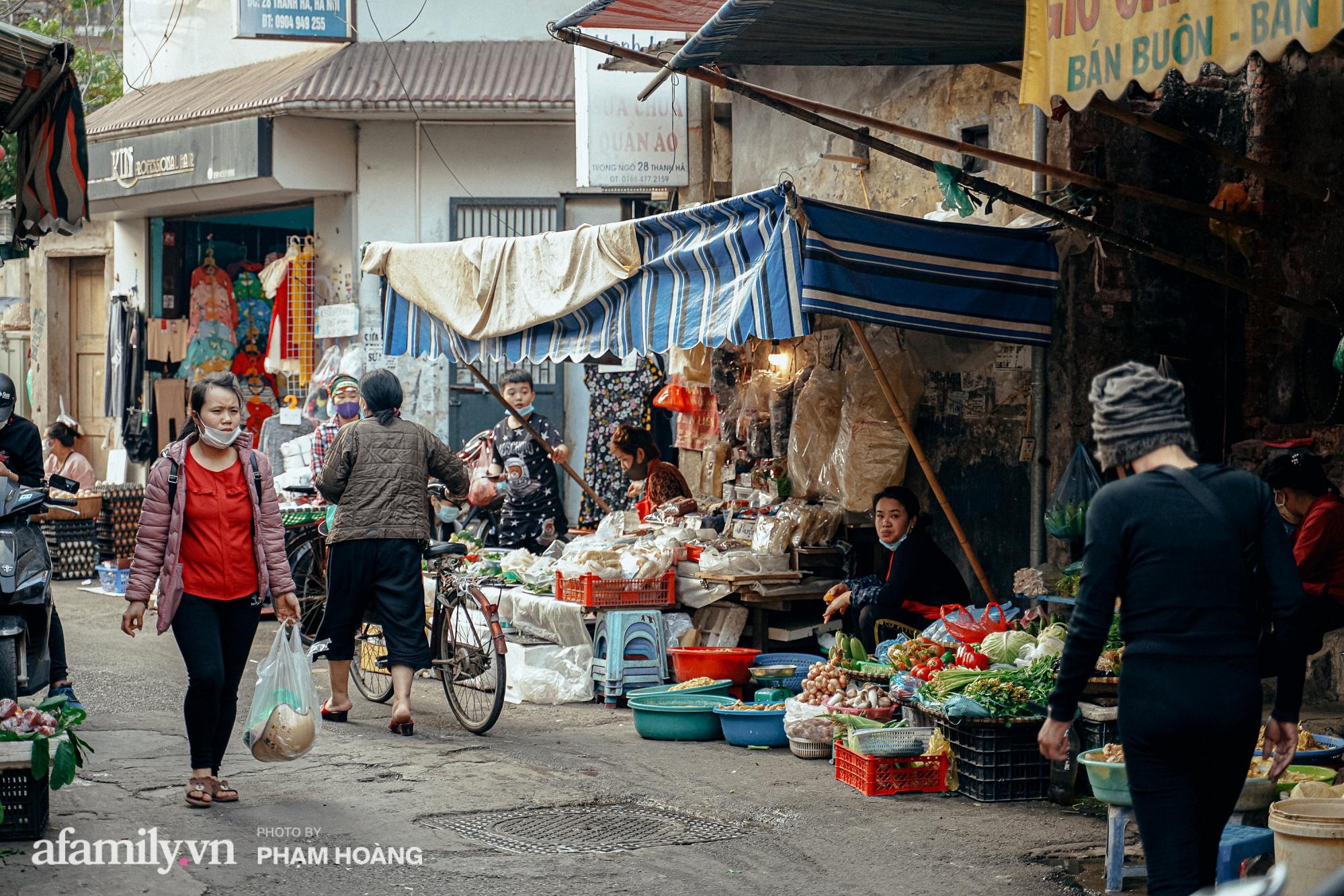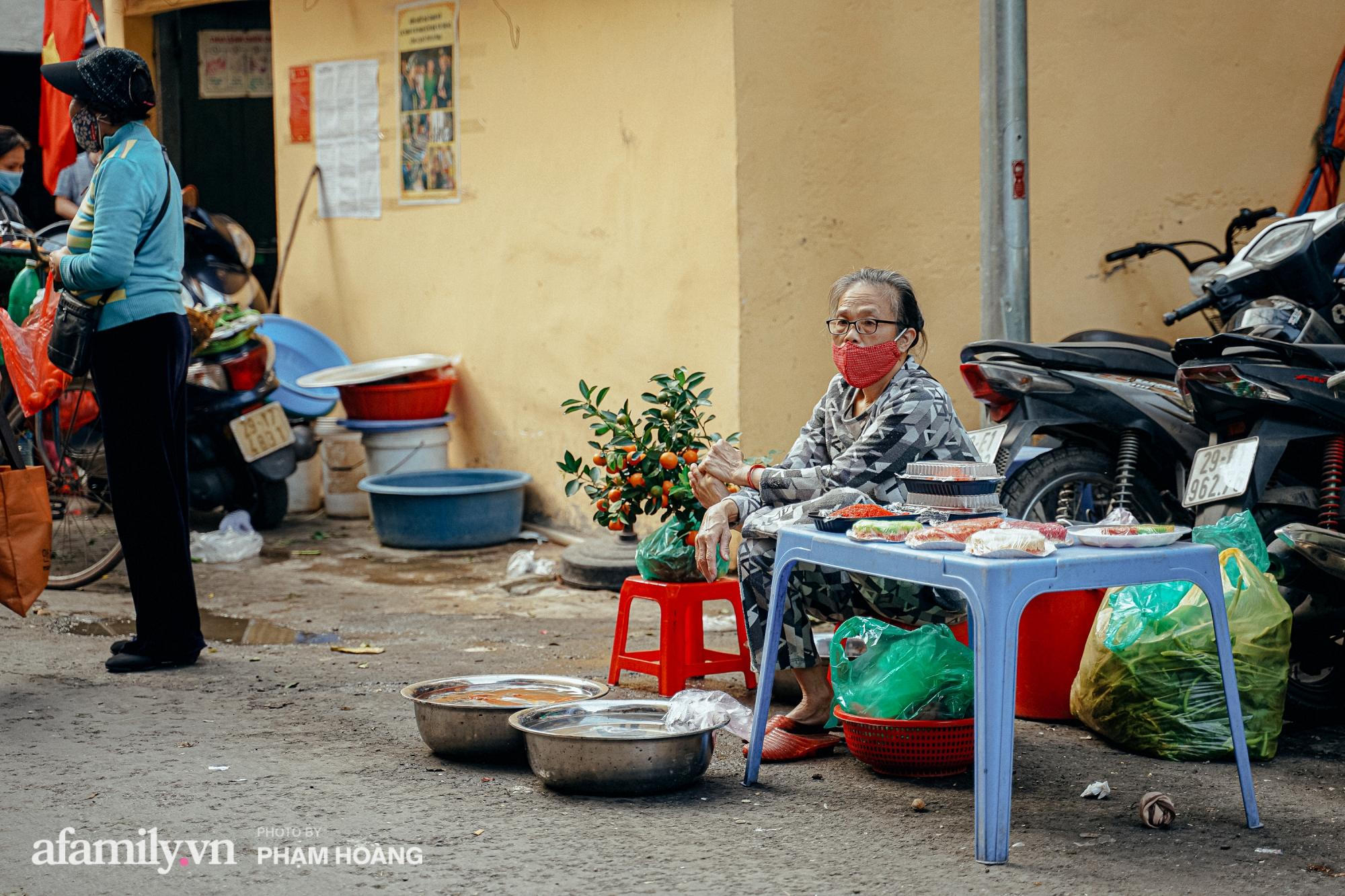 Mỗi dịp cuối tháng Chạp, càng gần ngày 30 âm lịch thì chợ càng đông đúc, có thêm hoa đào, hoa cúc và những gánh hàng rong bán đủ thứ truyền thống cho Tết. Thế nhưng năm nay do ảnh hưởng của dịch nên ngõ chợ đã bớt sầm uất hơn, mọi hoạt động giao thương đều diễn ra nhanh chóng. Chỉ có những hàng ăn vặt, bún phở trong ngõ là đông khách, nhưng cũng không chen chúc như mọi năm. Mùi há cảo, mỳ vằn thắn thơm phức, vấn vương quanh góc phố rồi tan ra trên những tán cây đã treo đầy lồng đèn rực rỡ đón Tết.