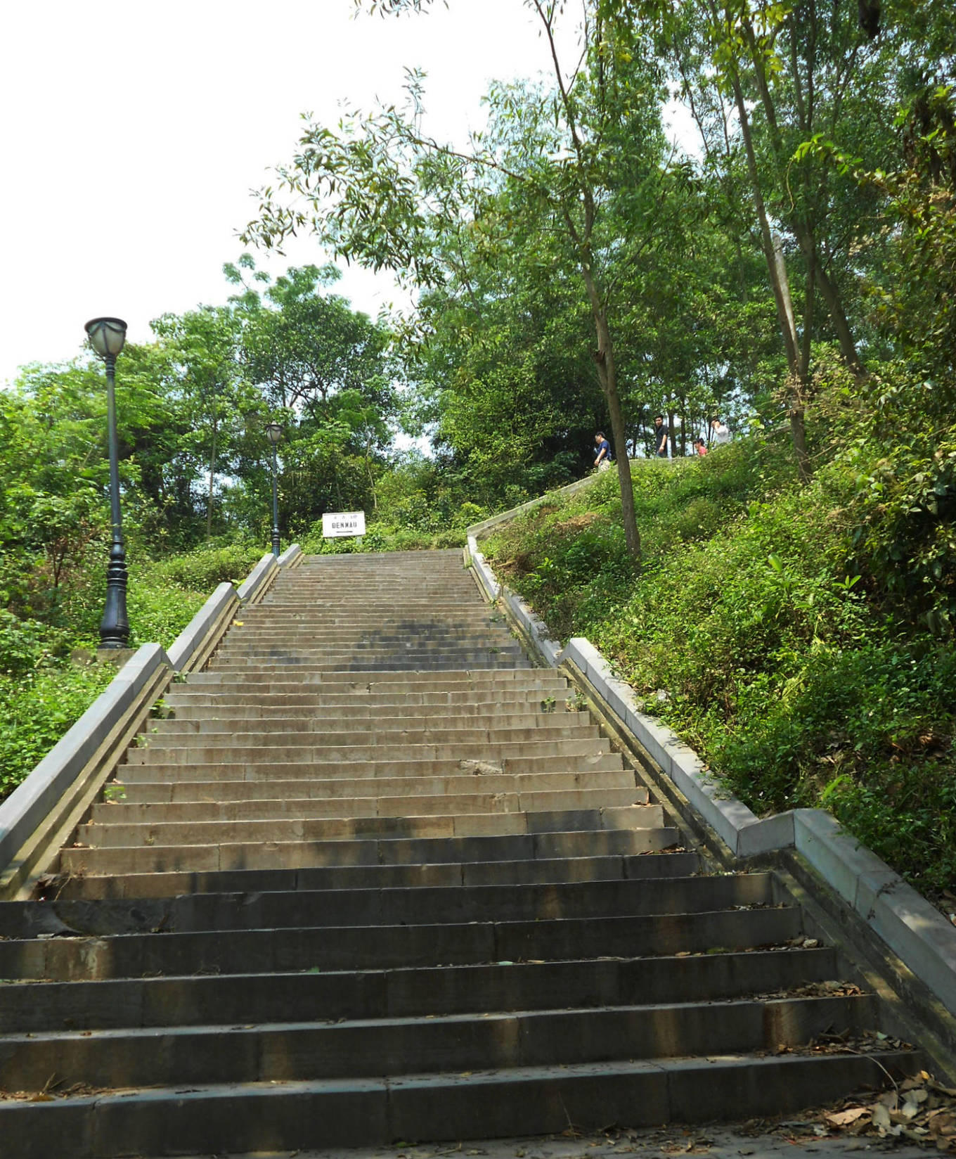 Từ trên đỉnh núi phóng tầm mắt ra bốn phía, khung cảnh khoáng đạt, nên thơ, có cánh đồng lúa, bãi ngô, ruộng khoai mượt mà, tươi xanh, chân núi có dòng Châu Giang quanh co lượn khúc như dải lụa đào uốn quanh.