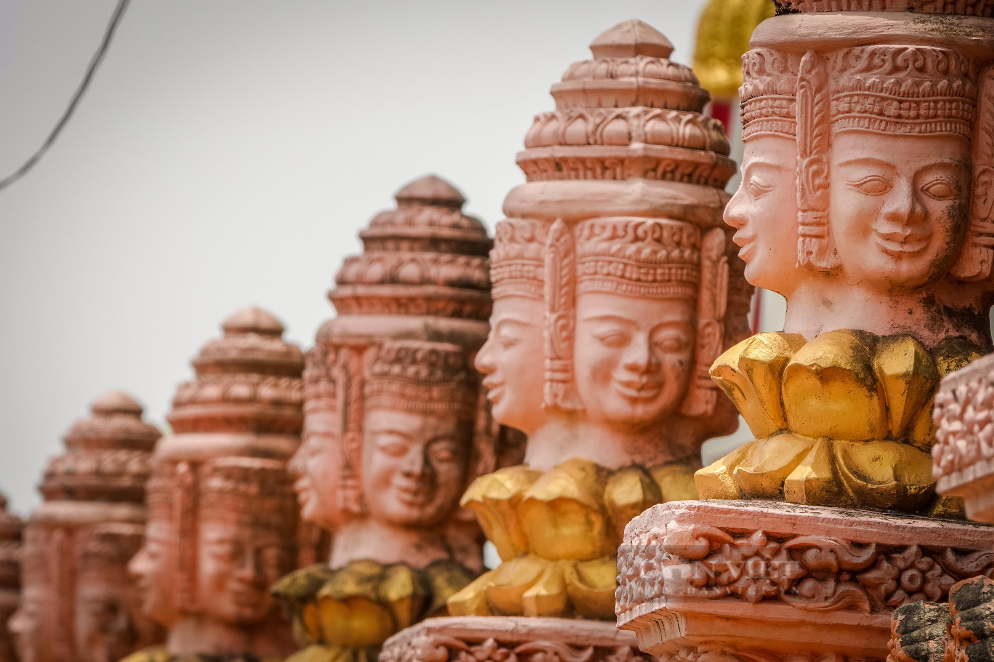 Tượng Phật 4 mặt được dựng tại các đoạn tường, cột trong chùa (Ảnh: Dân Việt) |