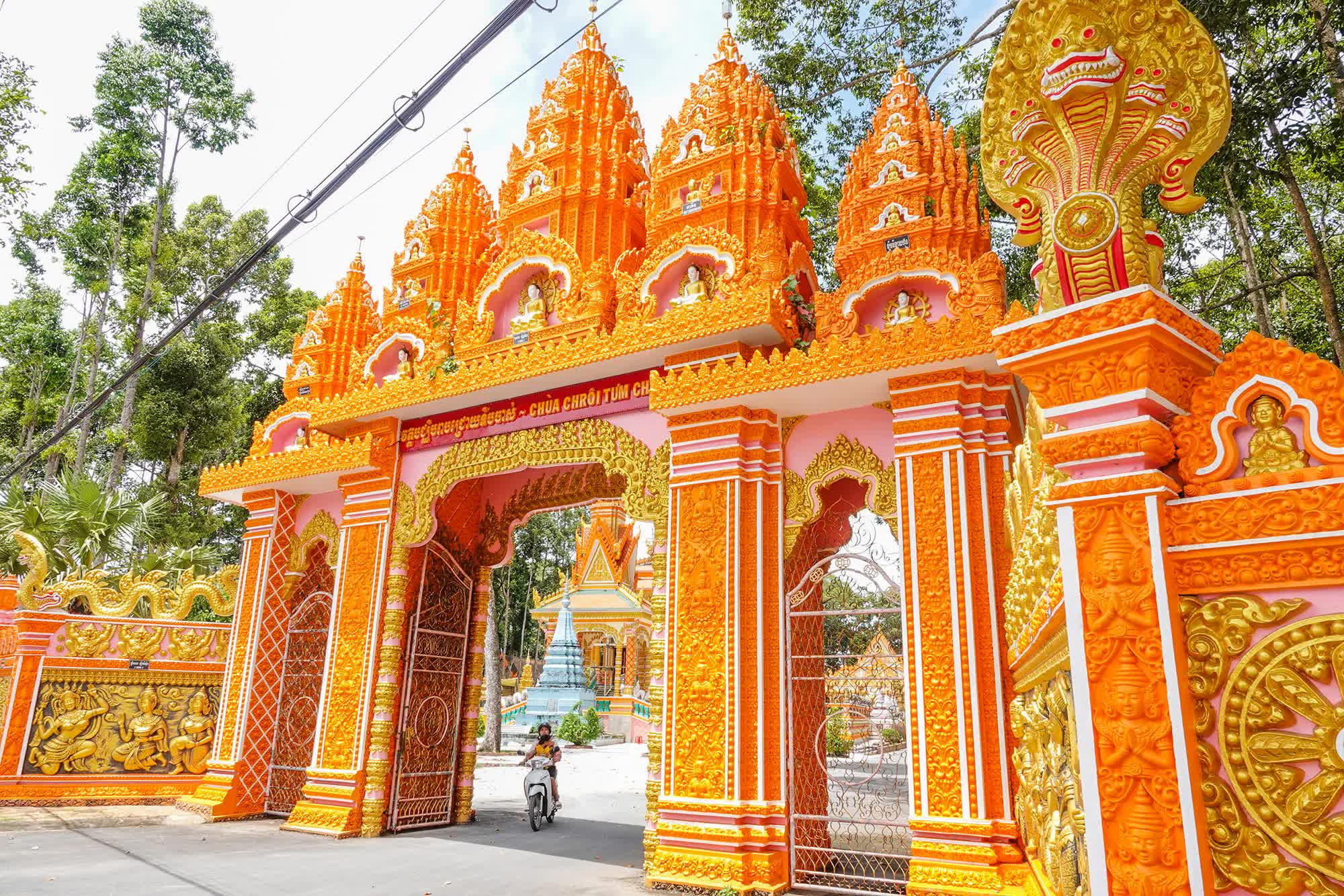 Chùa Chrôi Tưm Chắs có kiến trúc độc đáo và trang trí bằng các hình ảnh và mô típ truyền thống Khmer. Các màu sắc sáng tạo, như cam và hồng, giúp chùa nổi bật so với các chùa khác.