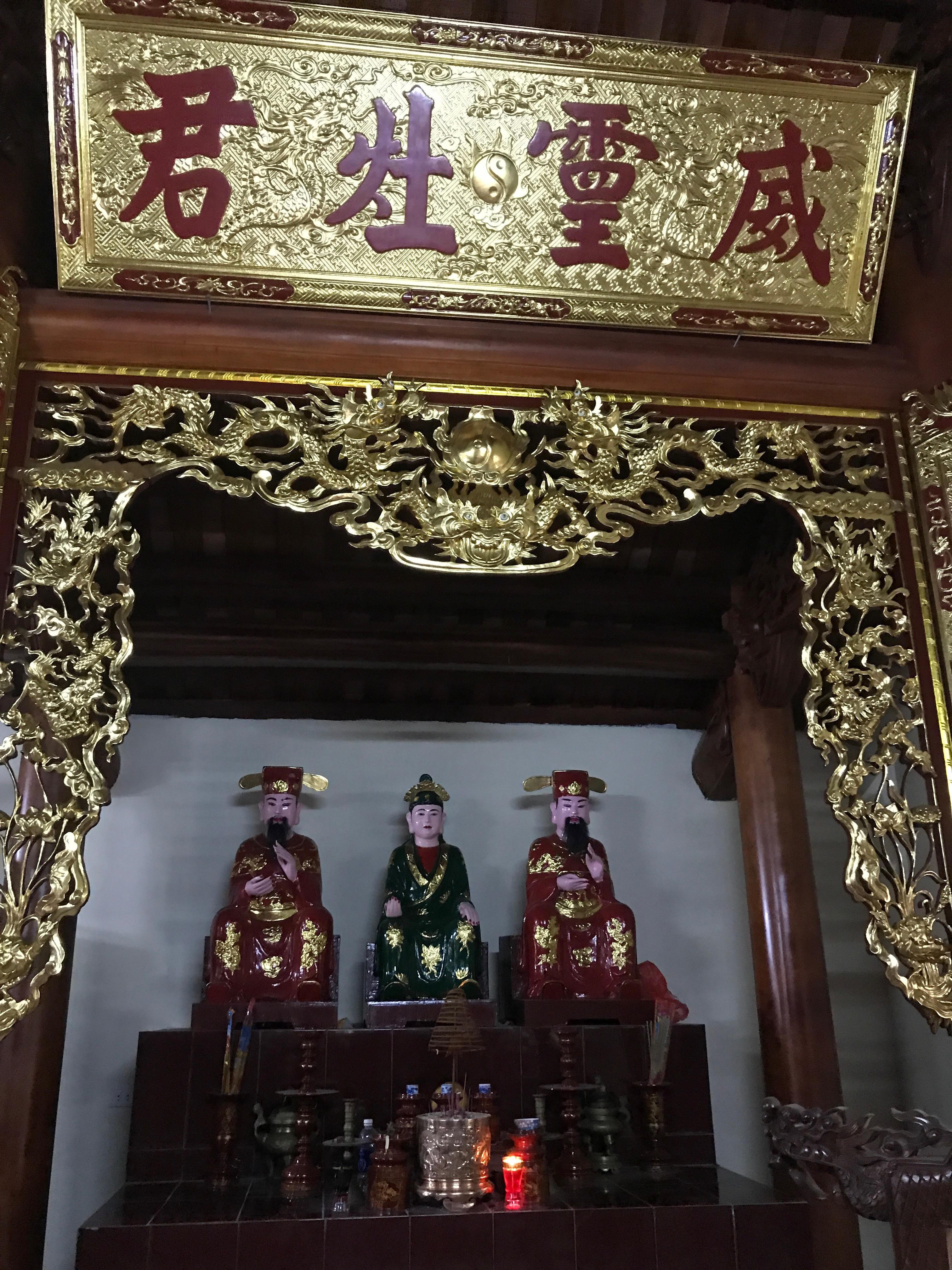 Ngoài hệ thống cổ vật quý còn lưu giữ như tượng thờ, trong hậu cung đền Xà còn có bàn thờ Táo Quân với tượng “hai ông, một bà”. Đầu xuân, du khách, người dân đến lễ đền Xà cầu quốc thái dân an cũng không quên thắp nhang ban thờ Táo Quân với ước nguyện cầu cho gia đình luôn ấm lửa, mong hạnh phúc, bình an cho gia đình mình và cho mọi nhà.