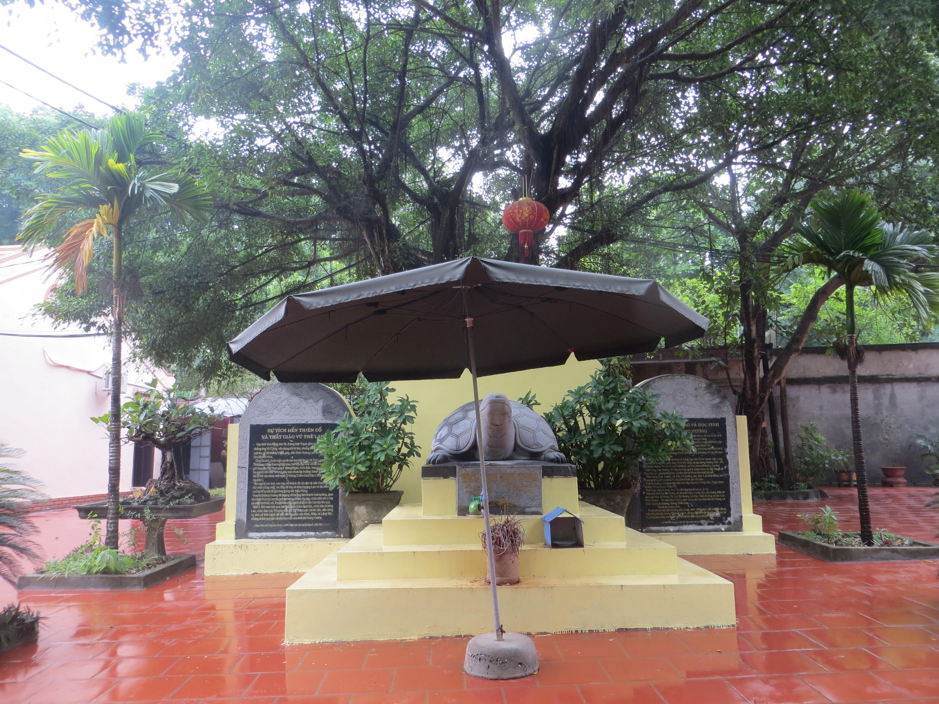Sau này ba người con trai của thầy giáo Vũ Thê Lang trưởng thành đều trở thành đô sĩ cận vệ của vua Hùng. Khi nhà Hùng mất, ba ông đã tìm về thôn Hương Lan trẫm mình xuống hồ tự vẫn để tỏ lòng trung nghĩa. Vua An Dương Vương phong ba ông làm thành hoàng làng, lập nơi thờ tự. Nhân dịp này, nhân dân cũng lập miếu thờ vợ chồng thầy giáo Vũ Thê Lang và trồng hai cây táu cổ trước đền thờ. Hiện trước sân đền cũng có đôi cây táu đại thụ, tương truyền cây này là con cháu của “cụ” táu thời Hùng Vương.
