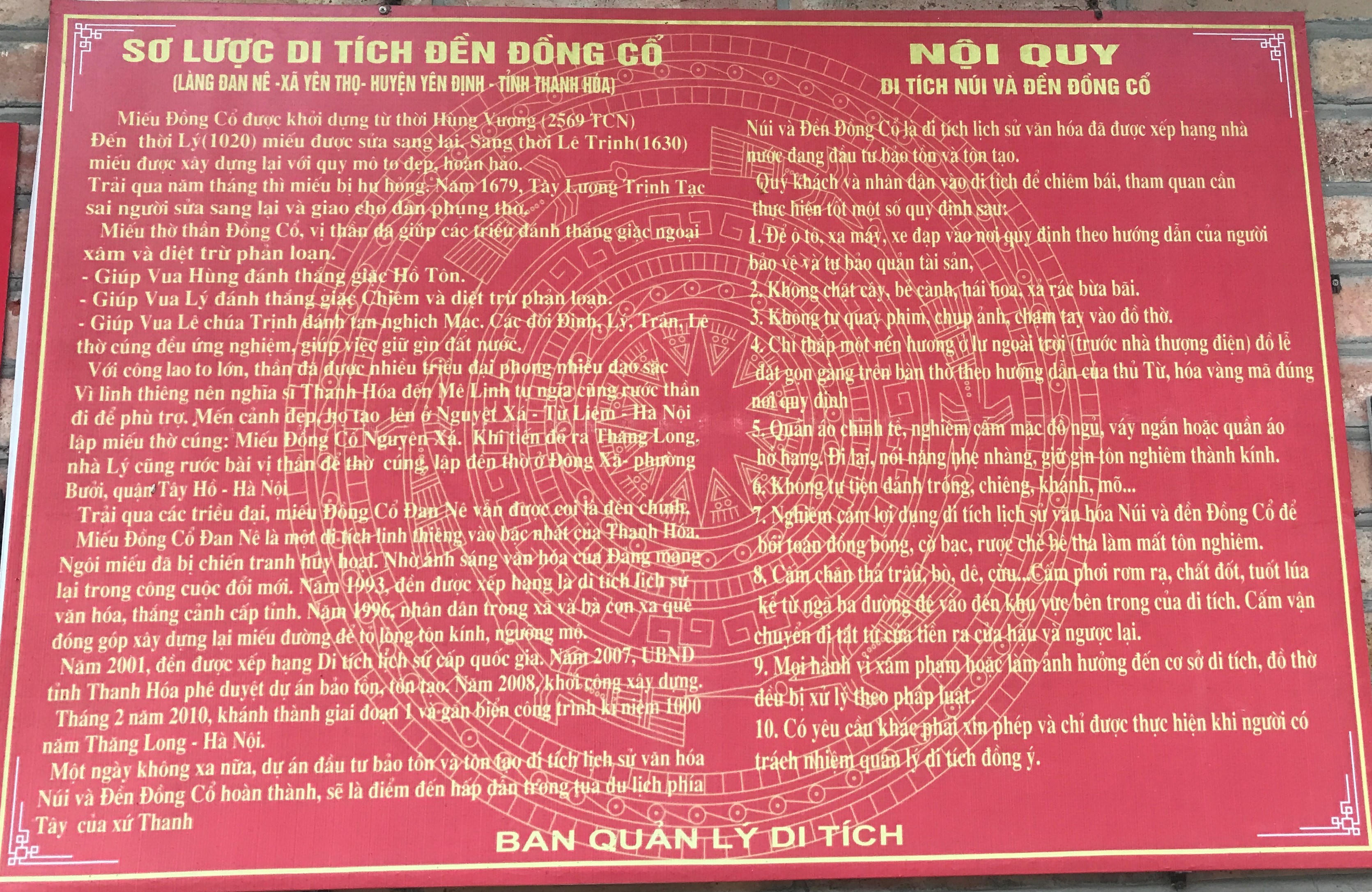 (PLVN) - Đó là đền Đồng Cổ thờ thần Đồng Cổ - vị thần có công lớn đối với sự nghiệp xây dựng và bảo vệ đất nước. Ngôi đền tọa lạc tại làng Đan Nê (xã Yên Thọ, huyện Yên Định, tỉnh Thanh Hóa) tương truyền có từ thời Hùng Vương, soi bóng xuống hồ bán nguyệt, bên cạnh là núi Tam Thai có quán Triều Thiên trên đỉnh nhìn xuống toàn cảnh sông Mã.