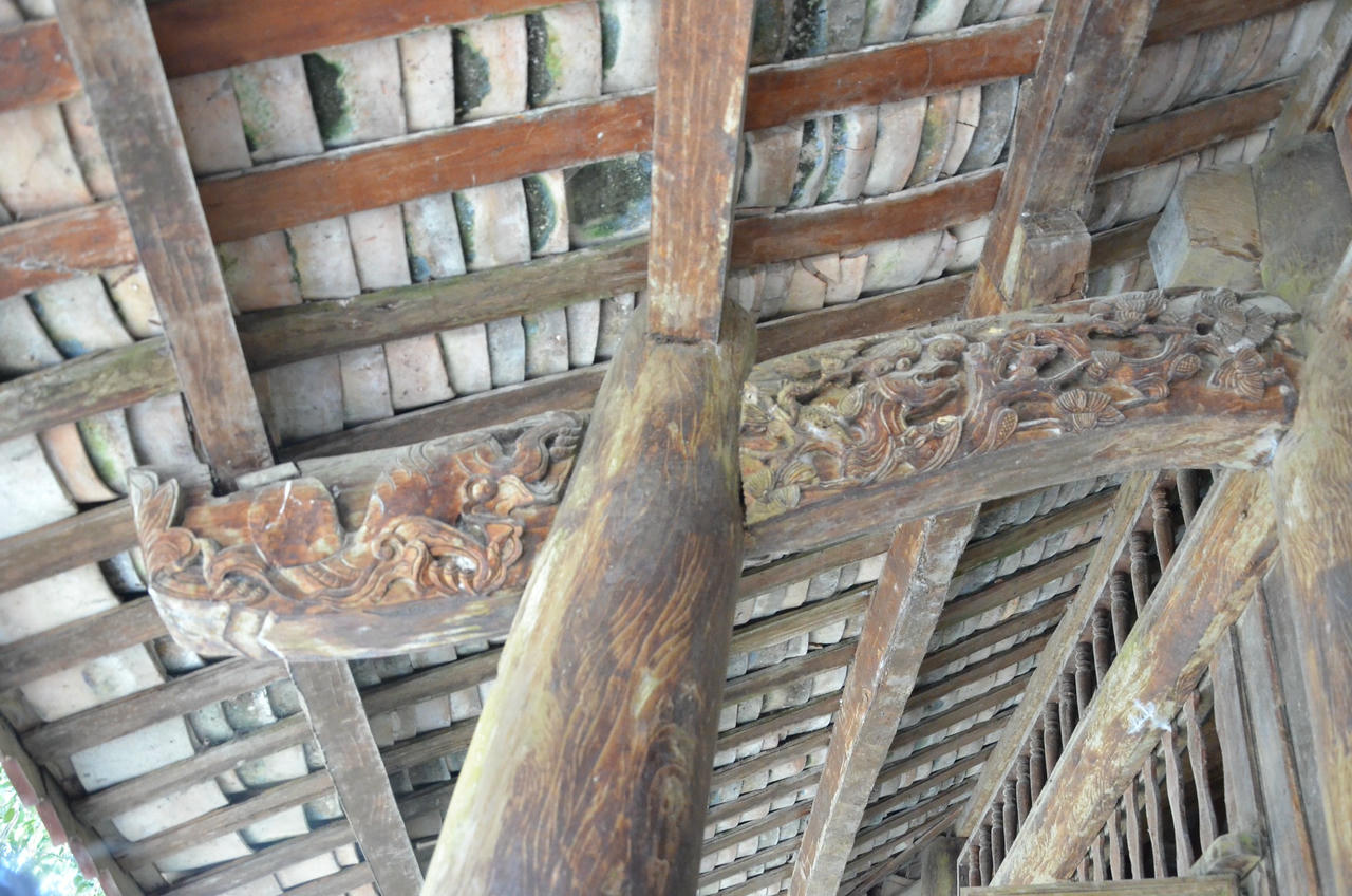 Dù có hình dáng bên ngoài giống với một ngôi nhà sàn của đồng bào Tày nhưng các họa tiết của đình lại mang đặc trong phong cách thời Nguyễn. Điển hình như các mối liên kết phía trên xà nách nối vào cột hiên với cột quân là các hoa văn thân thuộc như Lý ngư vọng nguyệt, tứ linh, cây trúc vàng… Đầu cột con với cột hiên đều được thắt đáy để dàn đều áp lực cho mái nhà.