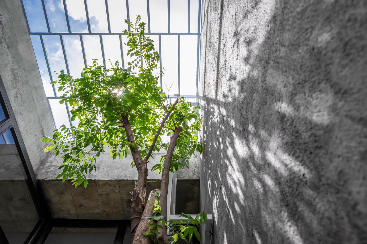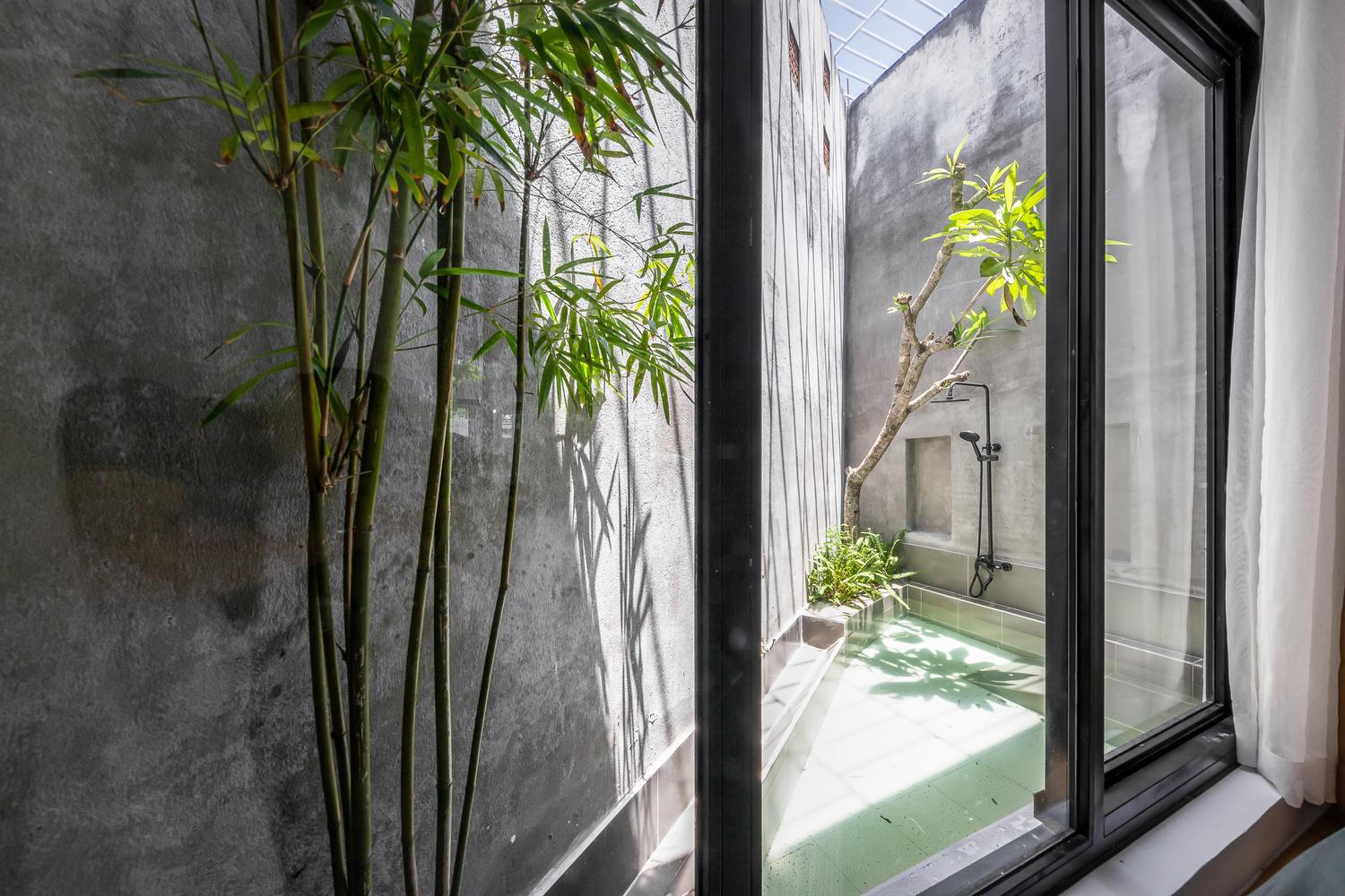 Khu vực sân giữa và sân sau hoàn toàn lộ thiên, chỉ được ngăn cách bằng các nan sắt chống trộm khiến gia chủ hoàn toàn cảm nhận được sự thay đổi của thời tiết ngay cả khi ở trong nhà.