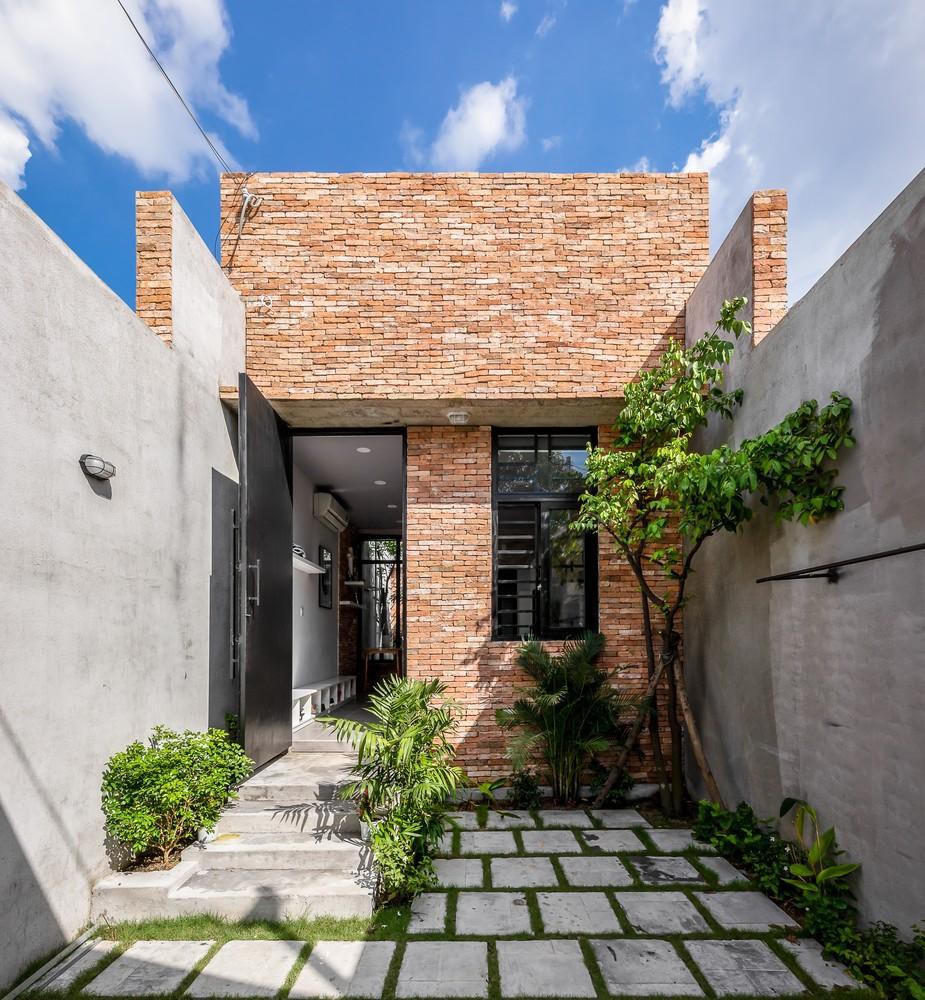 Mặt tiền ngôi nhà ốp gạch đỏ vừa đơn giản, tiết kiệm lại dễ tạo được điểm nhấn độc đáo.