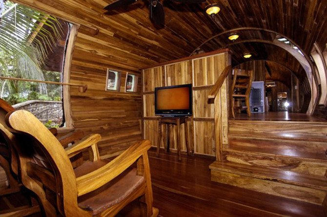 Nội thất bên trong ngôi nhà được ốp bằng gỗ sáng màu vô cùng ấm cúng |