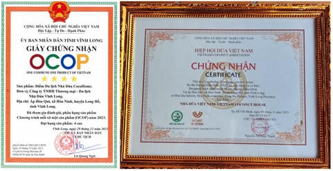 Tiếp nối niềm vui chung, Điểm du lịch Nhà dừa CoCoHome đã được Ủy ban nhân dân tỉnh Vĩnh Long chứng nhận OCOP đạt hạng sản phẩm 4 sao (đã tham gia đánh giá, phân hạng sản phẩm chương trình mỗi xã một sản phẩm (OCOP) năm 2023).