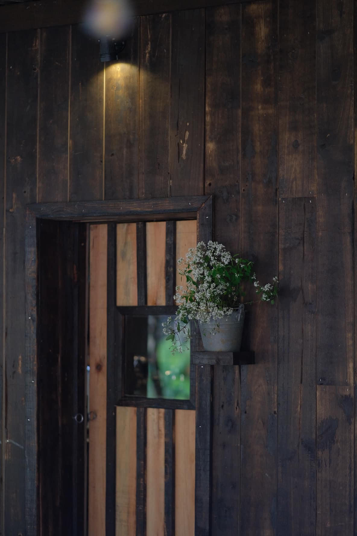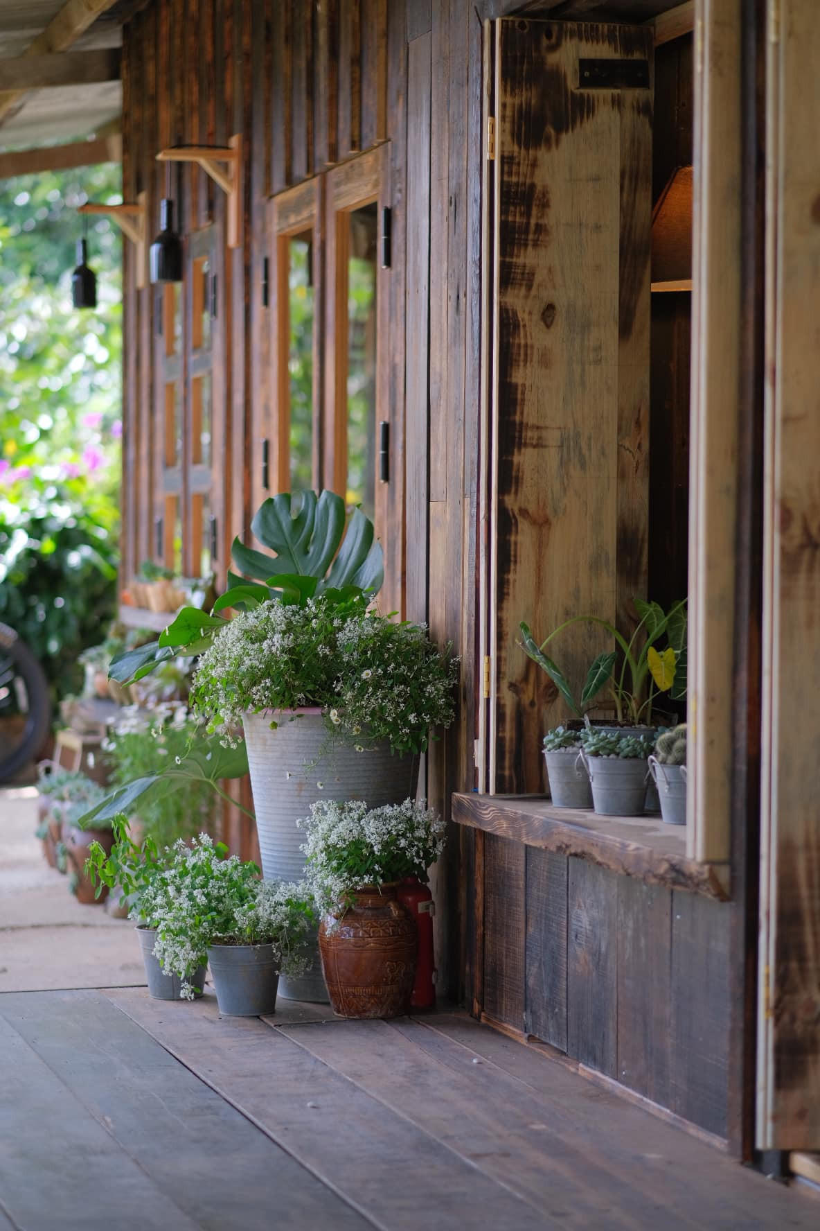 Bên cạnh mua gỗ mới dựng nhà, gia chủ còn lùng mua gỗ cũ về sửa chữa, làm mới và thiết kế thành những giàn hoa đẹp lung linh.