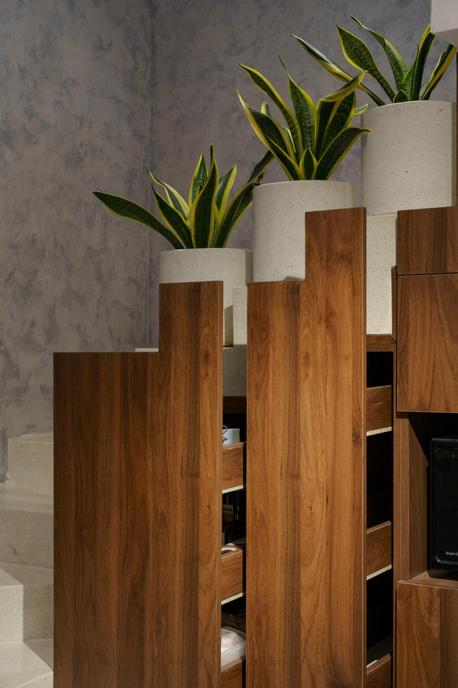 Dựa trên ý tưởng này, các kiến trúc sư đến từ Akitephile đã sử dụng các chất liệu như CaCO3, đá, cát, sỏi - những thành phần tương tự như đá ở thác Pongour. Chỉ cần cách điệu hình khối là có thể biến chúng trở thành vật liệu kiến trúc, từ đó tạo ra một hang đá nghệ thuật từ bê tông.