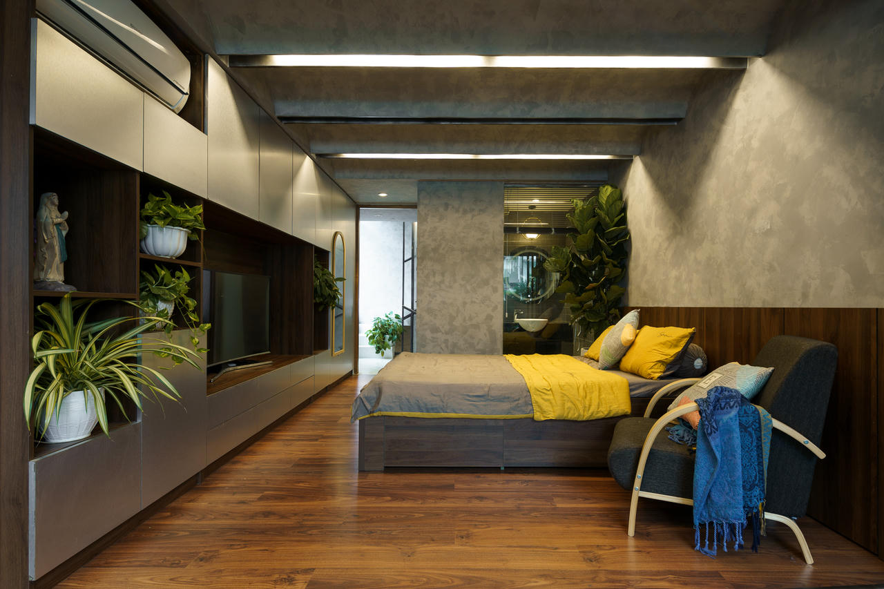 Sàn gỗ được sử dụng trong phòng ngủ, tạo cảm giác ấm cúng. (Ảnh: DH Studio)