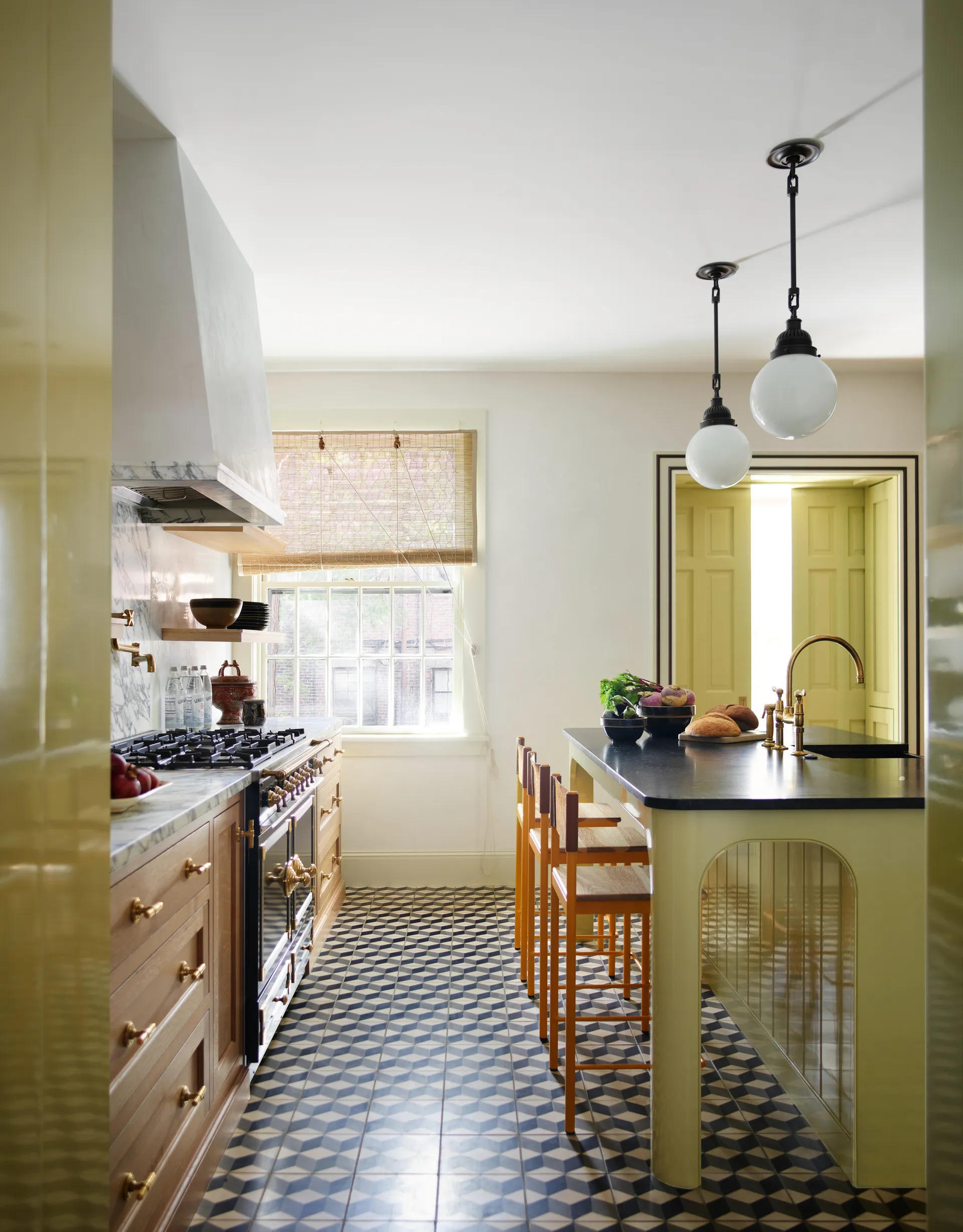 Phòng bếp sử dụng các gam màu xanh từ đậm đến nhạt (Ảnh: Architectural Digest) |