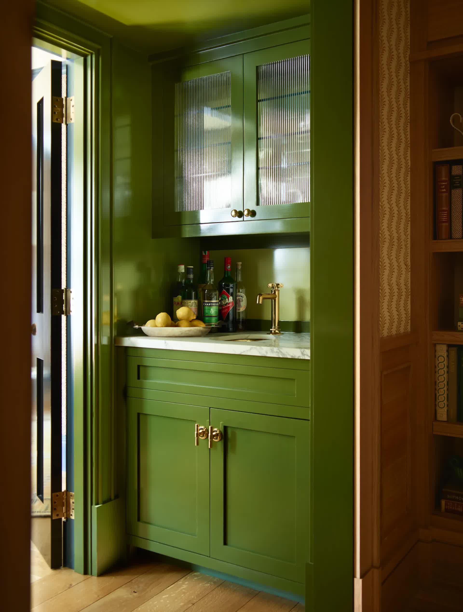 Màu xanh rêu xuất hiện trên nhiều chi tiết chính trong căn nhà (Ảnh: Architectural Digest) |