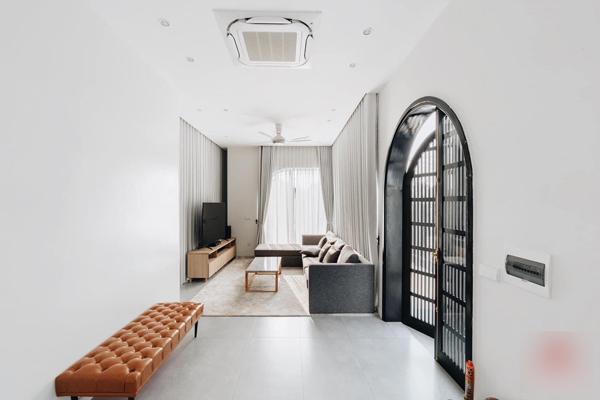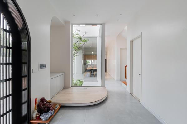 "Chúng tôi sử dụng những ô cửa kính lớn thay tường để bảo đảm đón được lượng ánh sáng tự nhiên tối đa, giúp không gian thêm phần thông thoáng. Màu chủ đạo là màu trắng kết hợp cũng đồ nội thất tông ấm và tông lạnh, cùng với những góc xanh để trung hòa mọi gam màu bên trong." Kiến trúc sư chia sẻ.