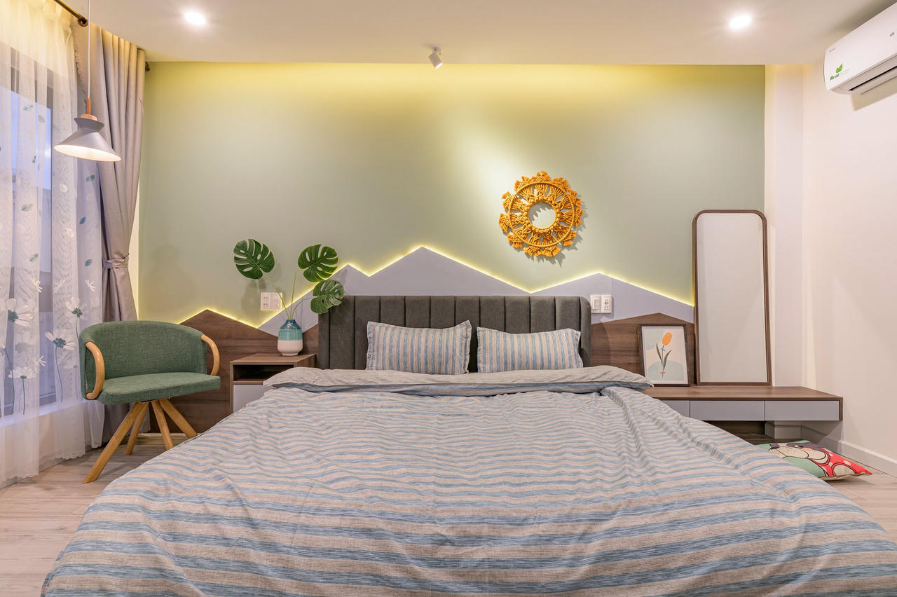 Tất cả đồ đạc phòng ngủ đều mang phong cách nhã nhẵn, đúng như tính cách chủ chủ căn nhà. |