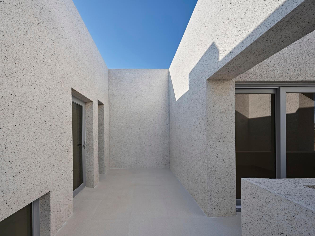 Ngôi nhà màu ngà voi được xây cho 3 thành viên nên gồm 1 phòng khách, 2 phòng ngủ, 2 phòng tắm, 1 phòng thay đồ, 1 nhà bếp và 1 phòng làm việc trên diện tích 119 m2 mặt sàn.