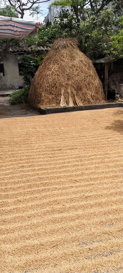 Bên ngoài sân còn có hai đụn rơm và một cái chuồng lợn làm bằng những thanh gỗ… có khi ghép bằng những tấm ván áo quan sau khi bốc mộ để cho lợn chóng lớn. Sân lát gạch nung không tráng men, để phơi thóc và đạp lúa bằng chân.
