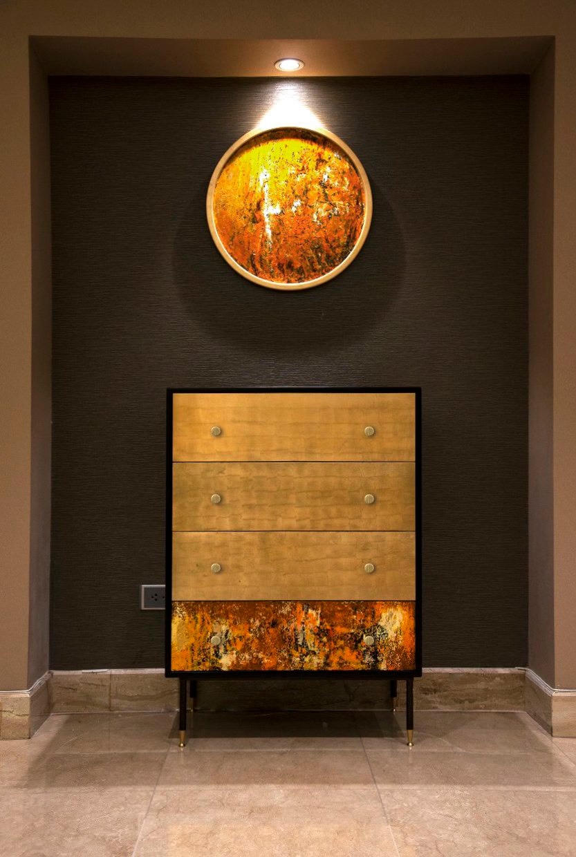 Theo chị Nguyễn Thu Trang (điều phối viên thực hiện triển khai dự án căn hộ) cho biết, chủ nhà của căn hộ này là người Châu Âu, hiện đang làm việc và sinh sống tại Việt Nam. Với niềm đam mê đặc biệt với nghệ thuật sơn mài Việt, gia chủ đã chọn cho mình mô hình dự án toàn bộ là sản phẩm nội thất sơn mài cao cấp, được làm handmade kỳ công , tinh xảo. Các tác phẩm hội họa hoặc art work, đi theo hướng “tailor-made có thể thiết kế và hoàn thiện sản phẩm theo ý riêng của gia chủ.