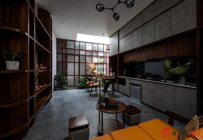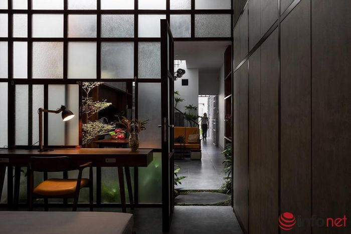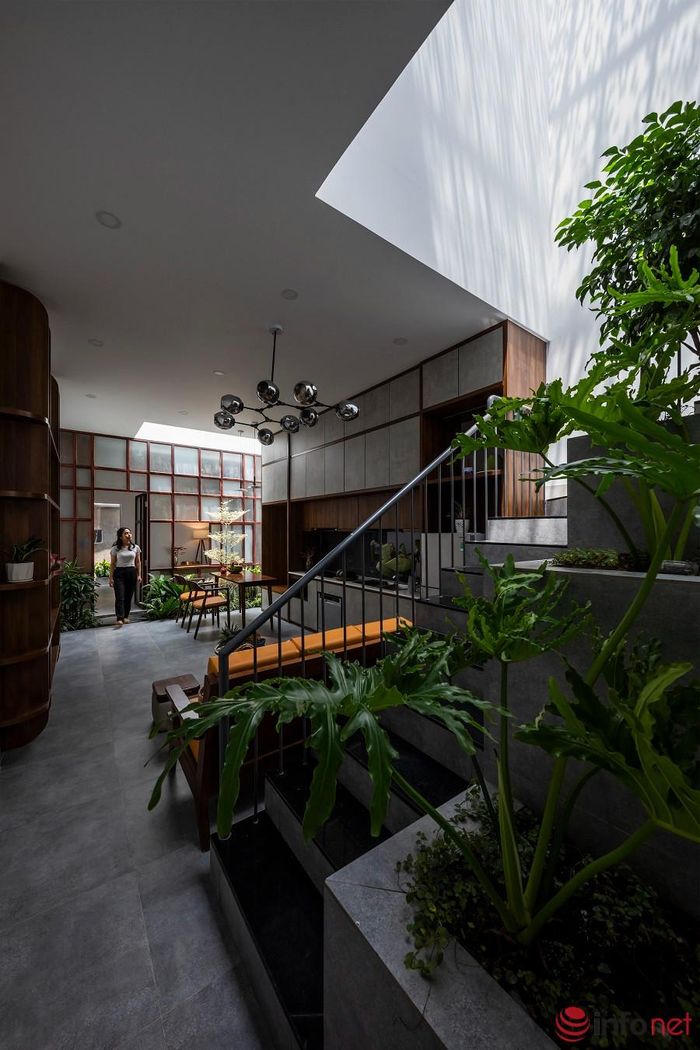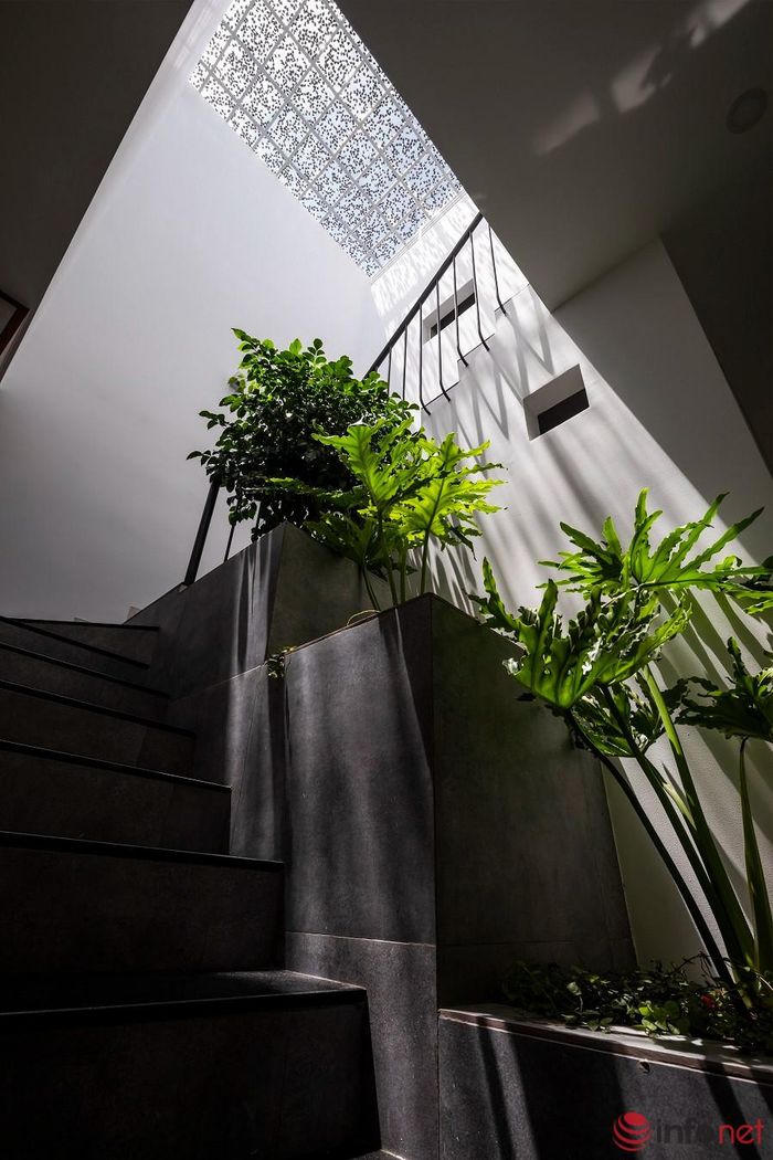 Việc bố trí công năng để thiết lập hai trục thông thoáng tự nhiên theo phương đứng và phương ngang đã đảm bảo tất cả các không gian trong nhà phố đều được thông thoáng tự nhiên. Hệ lam chữ Z bố trí ở phía trên giếng trời giúp thoát khí nóng, từ đó, làm giảm áp suất bên dưới mái kính.