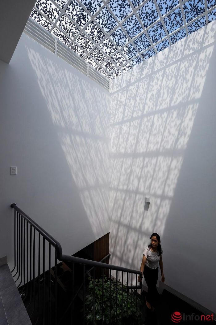 Cụ thể trong ngôi nhà này, kính solar được sử dụng để giảm 40-45 % lượng nhiệt cho khu vực giếng trời đồng thời điều tiết ánh sáng, tạo bóng mát bằng giải pháp rải đá mi phía trên kính.
