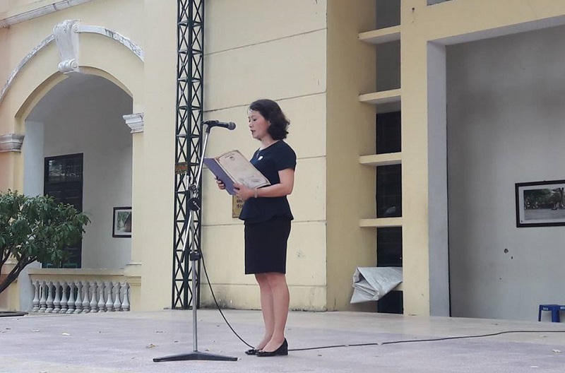 Trước hàng nghìn học sinh và thầy cô trong trường, bà Lê Mai Anh - Bí thư Đảng ủy, Hiệu trưởng Trường THPT Chu Văn An đã hứa cùng các thầy cô, học sinh cố gắng phấn đấu để đạt được nhiều thành công trong sự nghiệp giáo dục - trồng người như lời dặn của cố Chủ tịch nước Trần Đại Quang.
