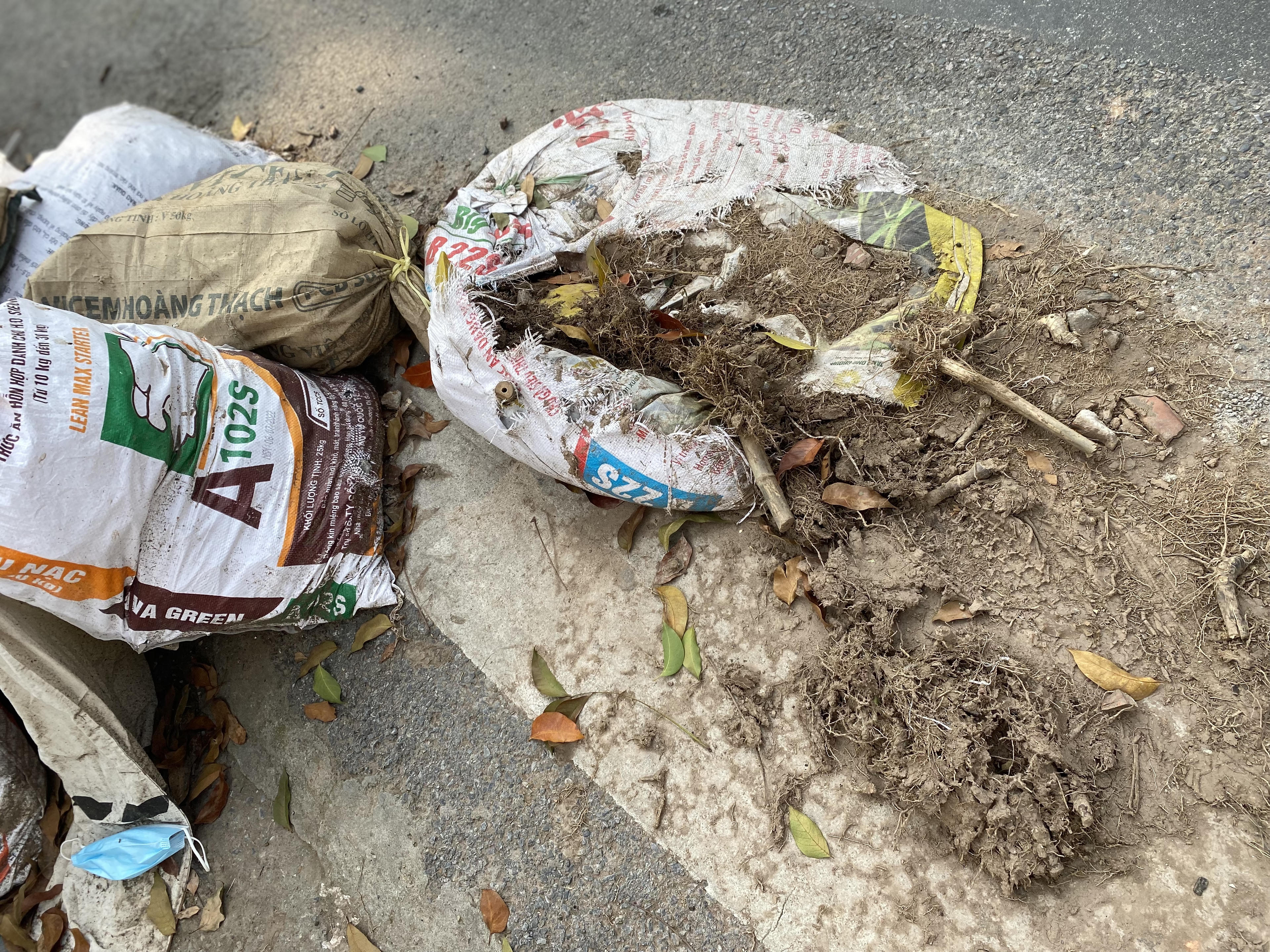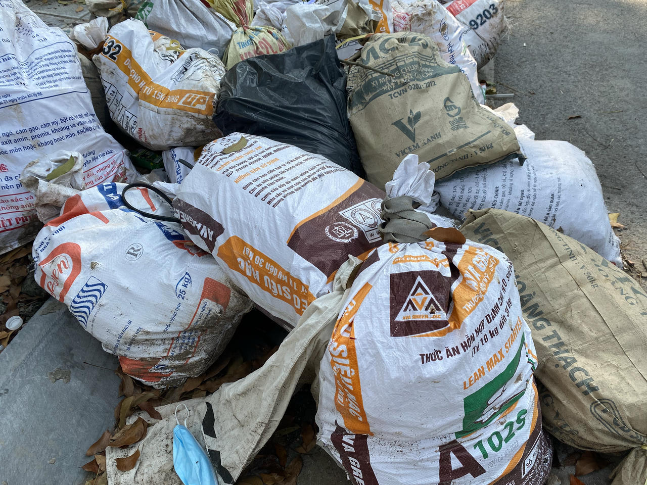 Khu vực vườn hoa Pasteur cũng thành nơi "tập kết" những bao tải rác.