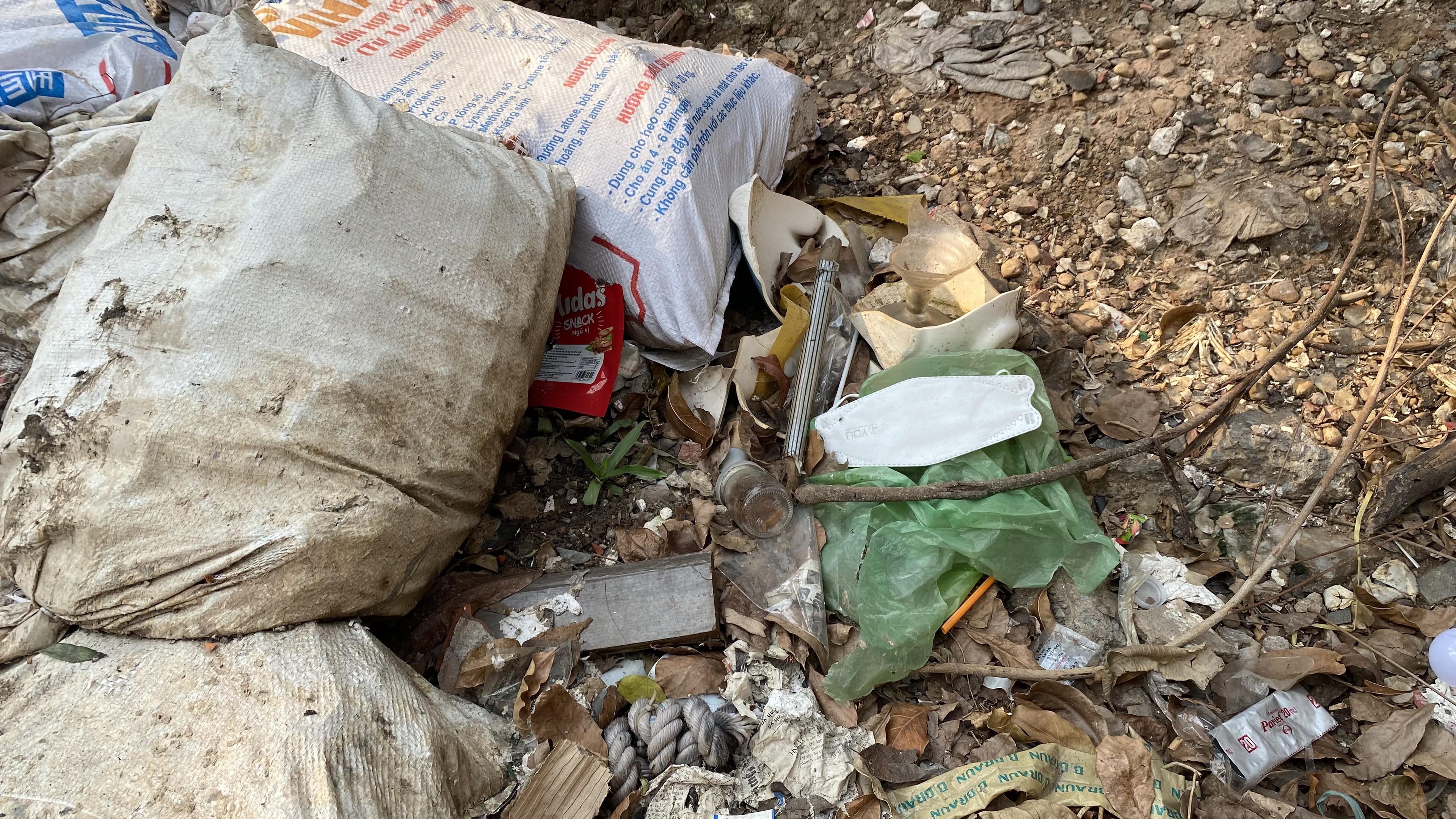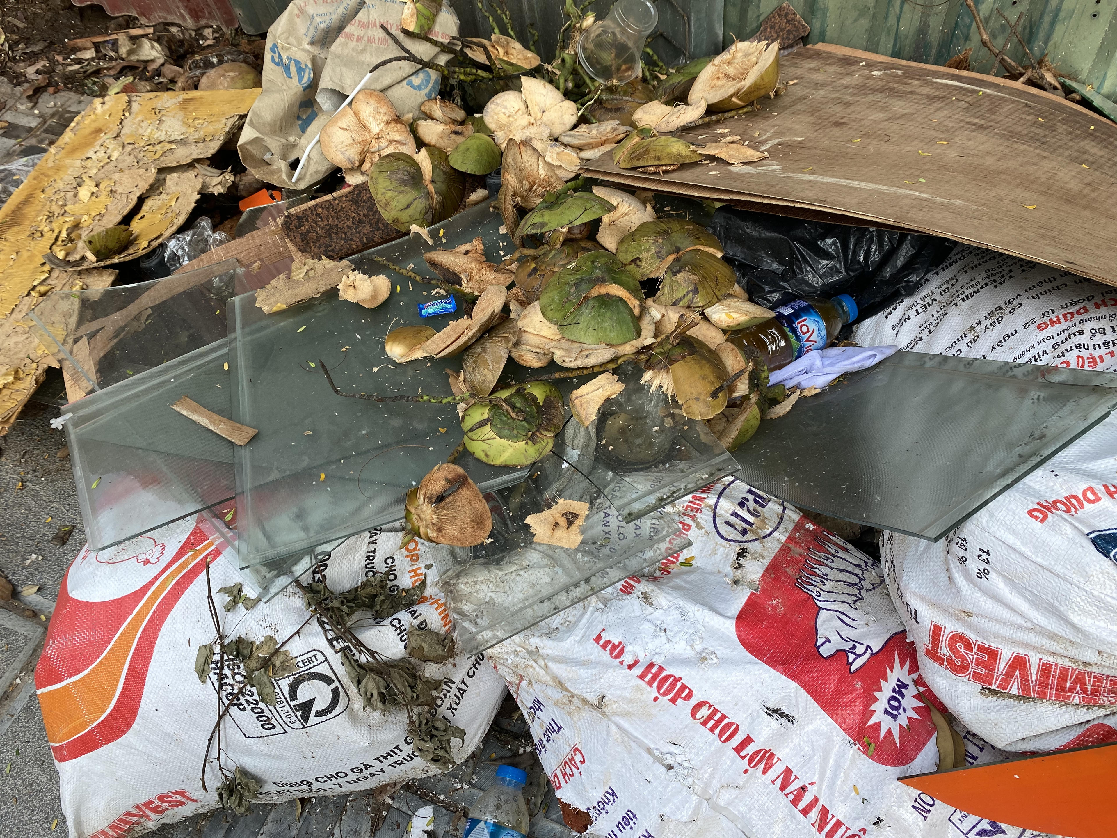 Những loại rác thải nguy hiểm như kính vỡ cũng bị vứt ở đây.