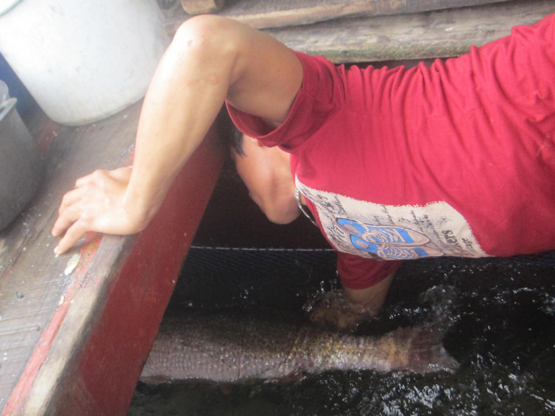 “Vừa đọc xong, cô ấy bật dậy khỏi giường giục tôi dẫn ra nơi cất giữ con cá. Khi vợ chồng tôi đang trên đường ra lạch sông thì tình cờ gặp một người họ hàng nên cả ba cùng ra xem. Sau khi kiểm tra kỹ, chúng tôi như vỡ òa vì biết đó là loài cá quý hiếm. Cân lên, con cá đó nặng 8,1 kg”, anh Sự kể lại.