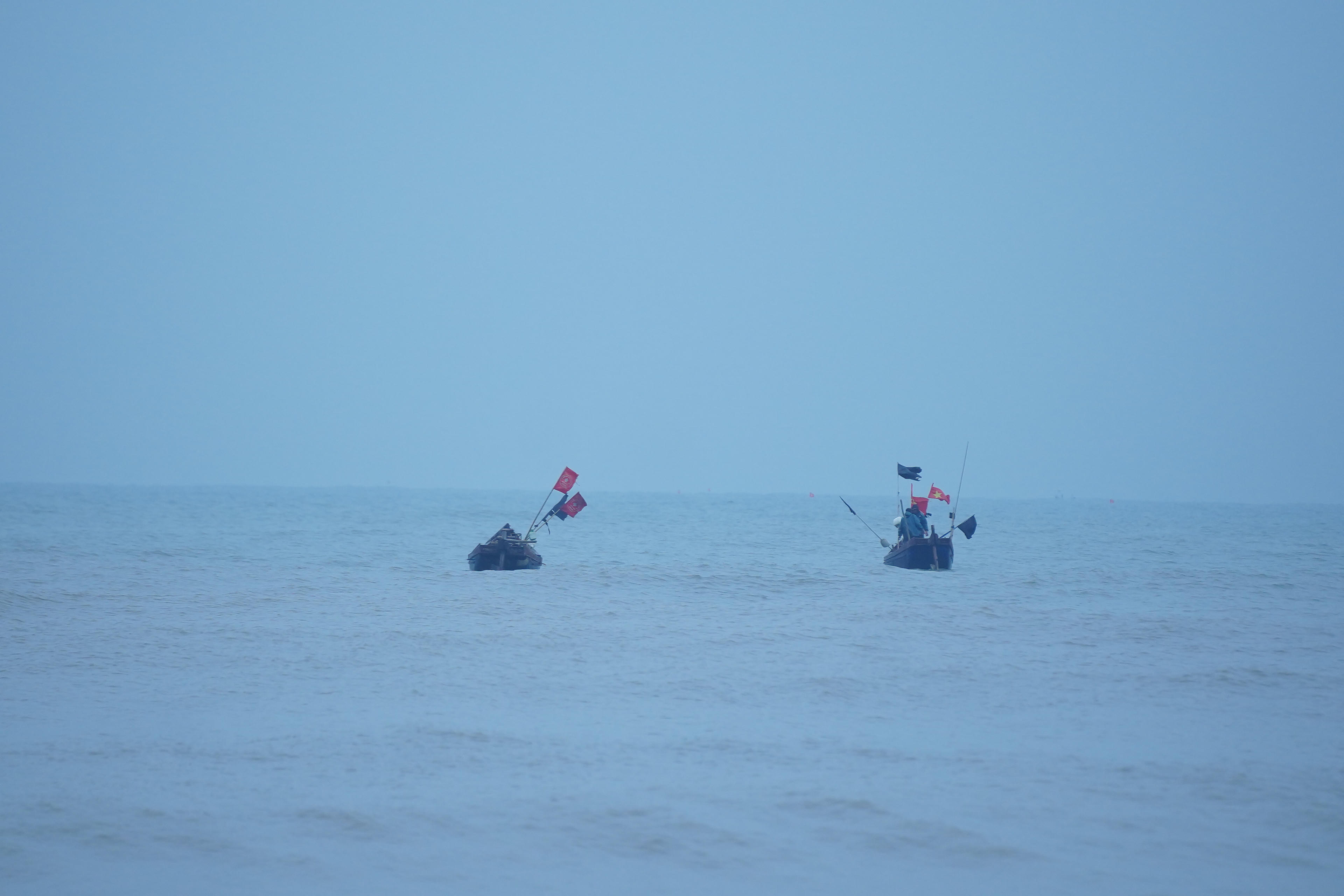 Giữa biển cả mênh mông chỉ lác đác bóng dáng vài con thuyền - Ảnh: Hương Giang |