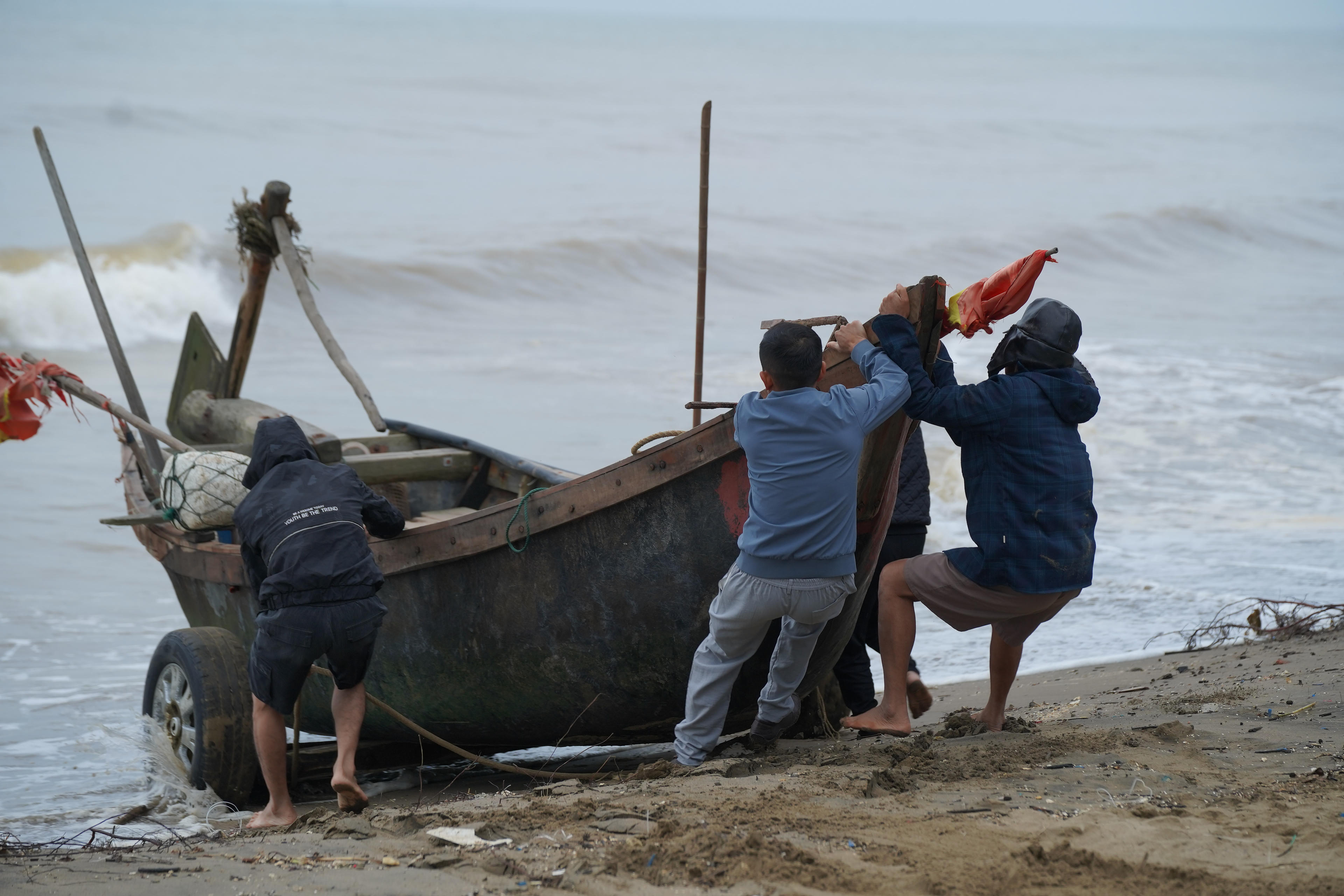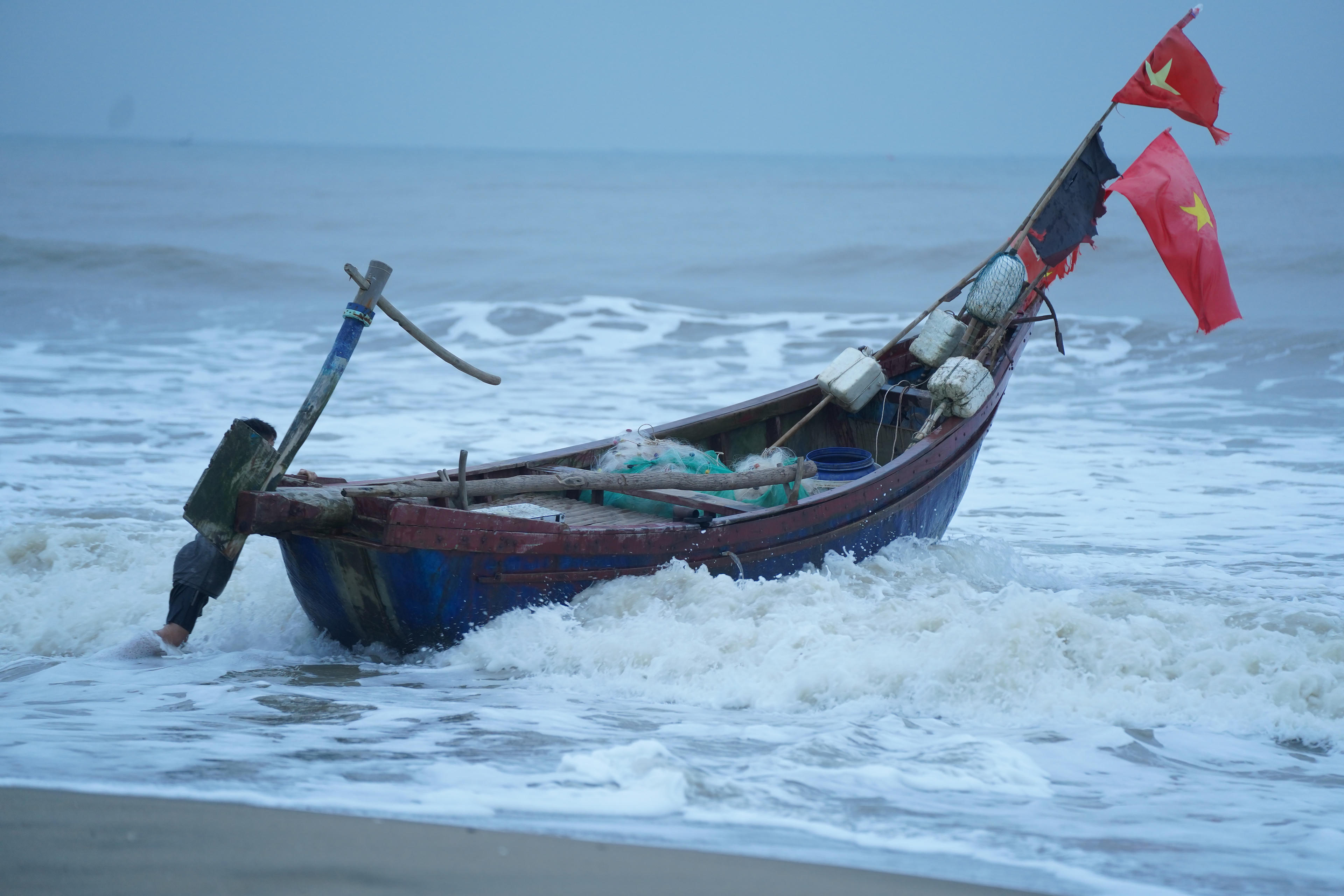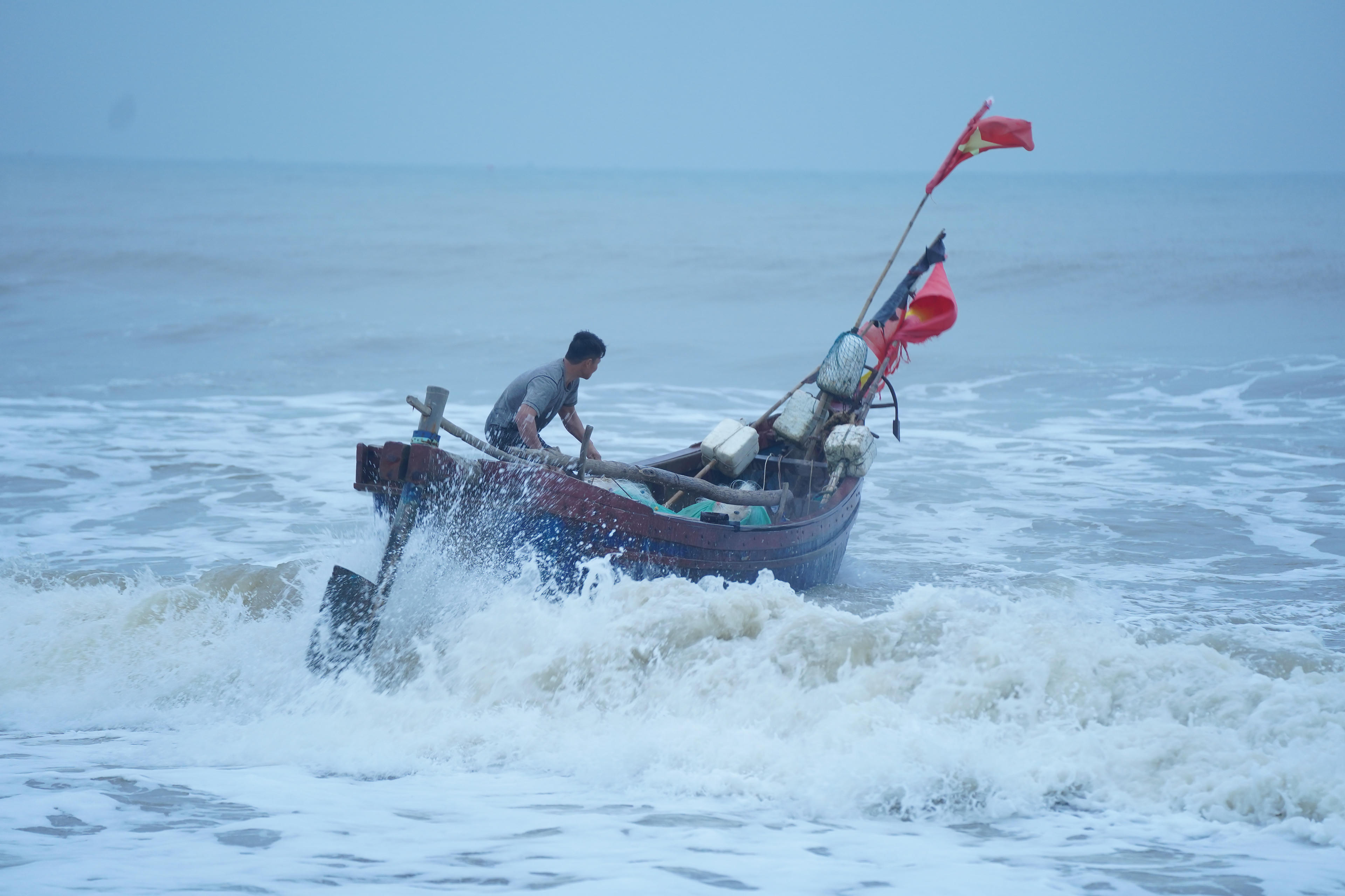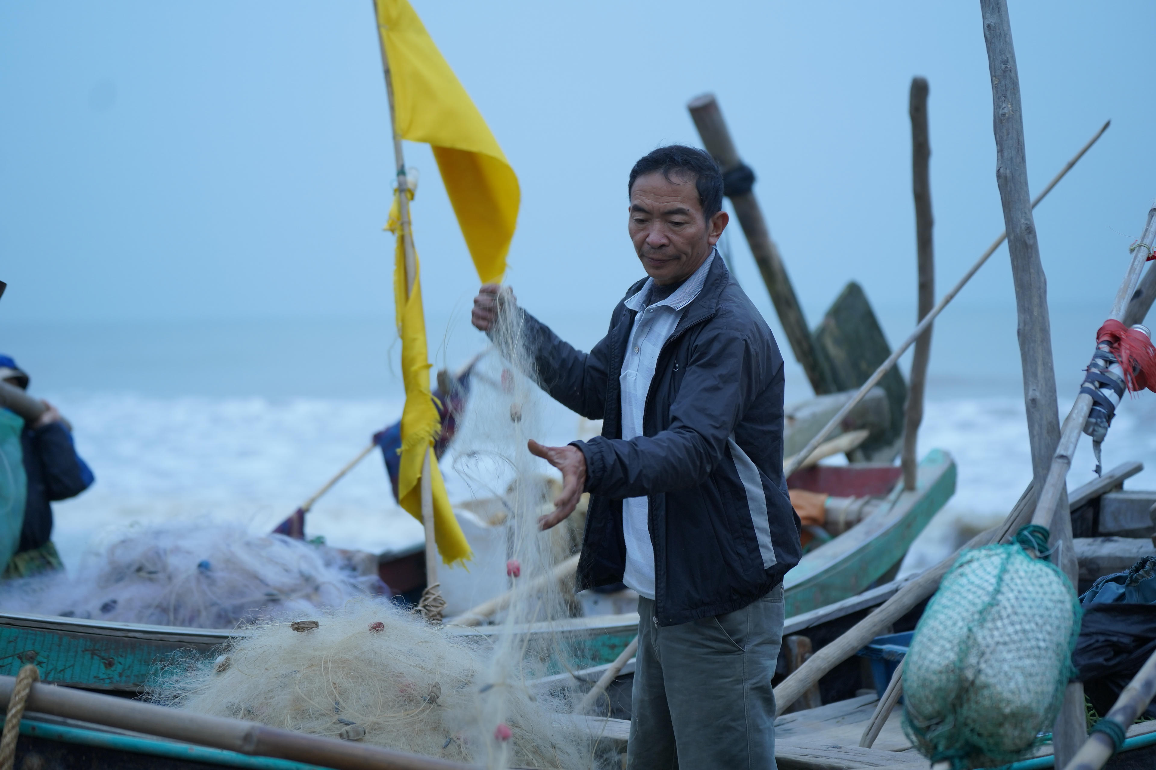 Tuy nhiên, vào những ngày cuối năm, gió mùa Đông Bắc tràn về, thời tiết không còn "chiều lòng người" nên chỉ số ít ngư dân ra khơi. Chuyến đi của họ bắt đầu khi trời đã hửng sáng và trở về trong vài tiếng. Những chiếc thuyền thúng mong manh đương đầu giữa biển khơi dữ dội, gió lớn, sóng mạnh.